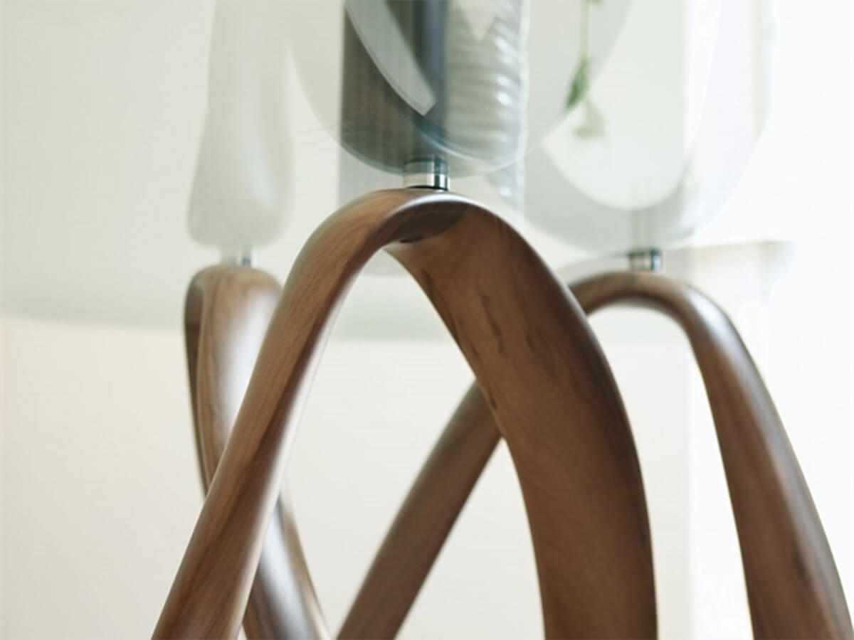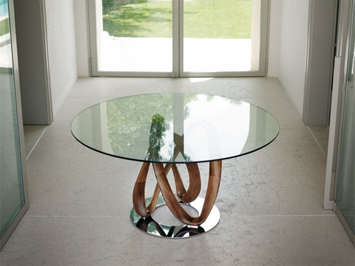 A table capable of expressing itself in different dimensions and perspectives, ideal for those who want to give their living room a touch of material and at the same time impalpable. Infinity is available in round, elliptical, square shape and more, to better adapt to different contexts. The beauty of the transparent top creates a perfect dichotomy with the legs in solid ash wood stained in different colors. The base supports the structure creating an additional mirror, in a succession of refractions and contrasts. The resultant is extremely pleasant and delicate, perfect for tastes of all times. Technical features: plate under the base available in chrome, black chrome, pewter gray or brushed brass finish