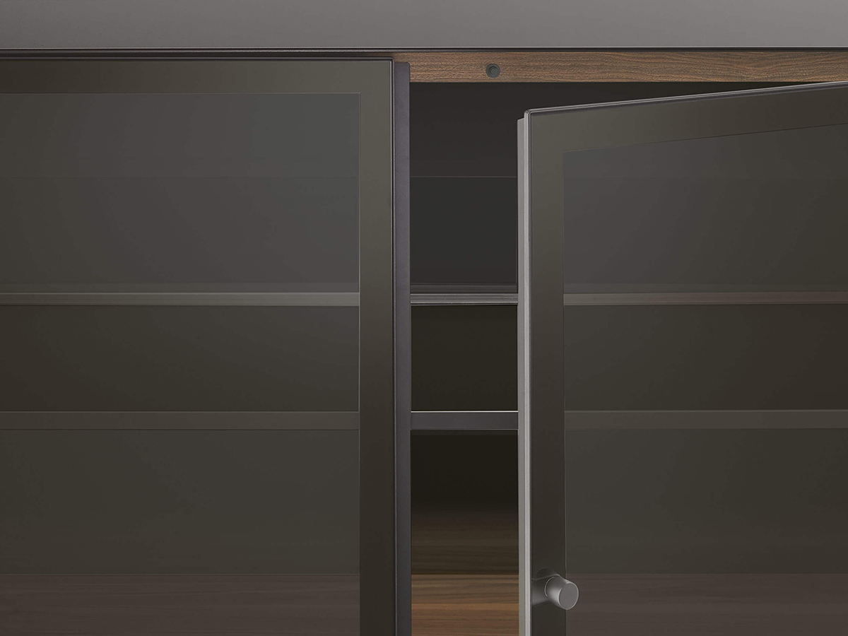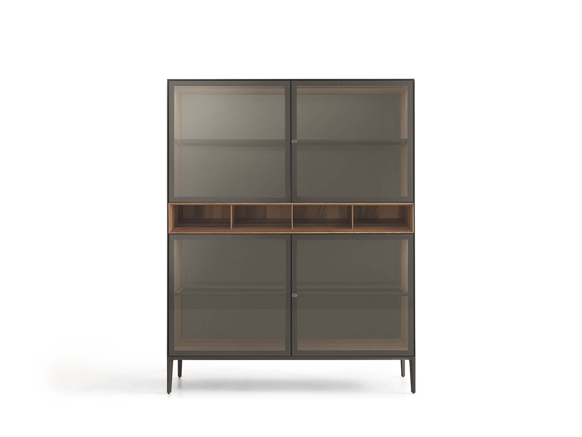 The Self Up sideboard is an articulation of the Self storage system, the cornerstone of the Rimadesio proposal for the living area and beyond. Supported by thin and elegant aluminium feet, Self Up is a storage unit characterized by the utmost formal lightness. Leaning on a real furnishing system, Self Up allows an almost infinite variety of compositions: it can also take the form of a sideboard or chest of drawers, it can provide for the insertion of open compartments or drawers and can provide for doors and structure a great variety of finishes, ensured by the 70 colors available for the finishes thanks to Rimadesio's Ecolorsystem program. The doors can also be made of glass or ribbed wood, with a pleasant and refined retro effect.