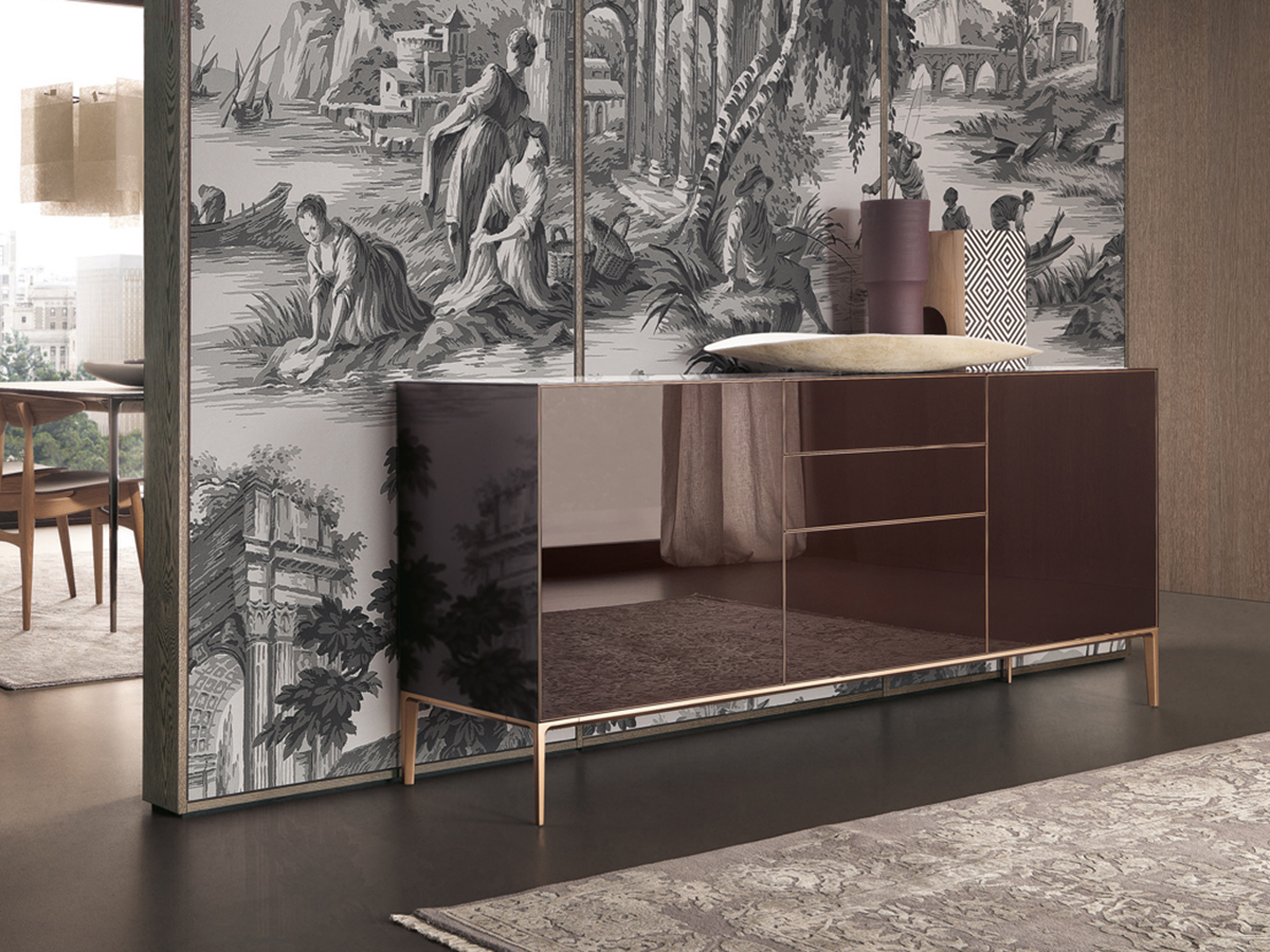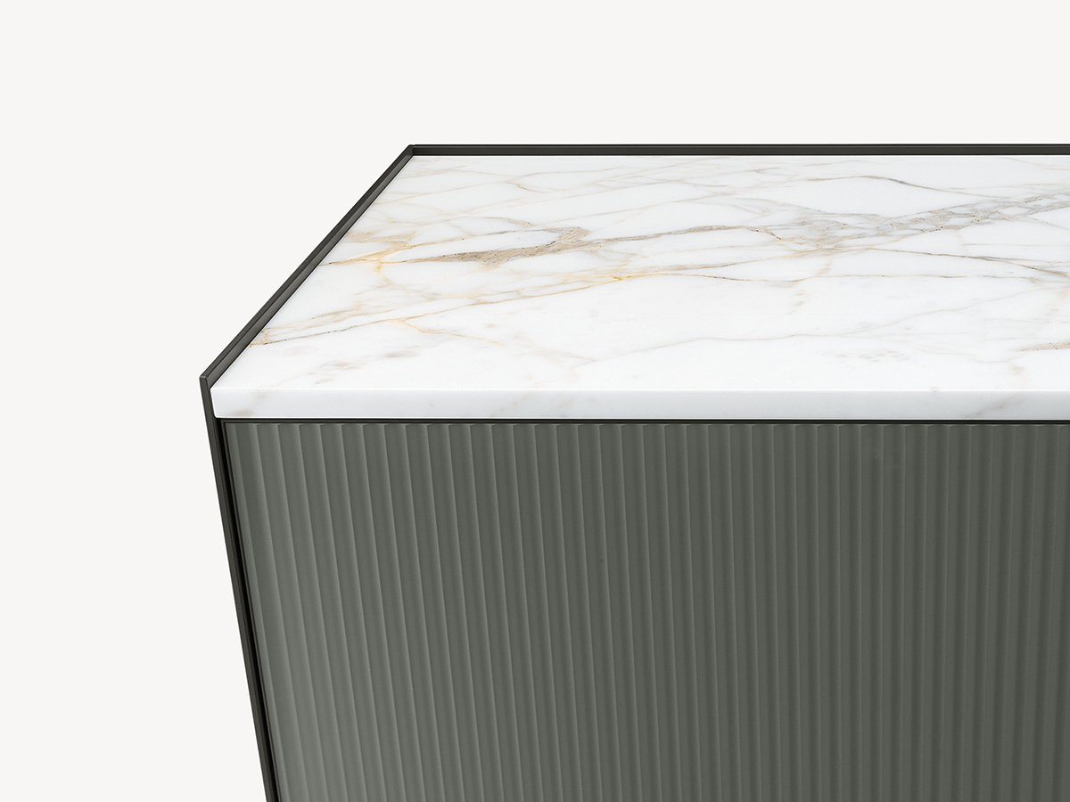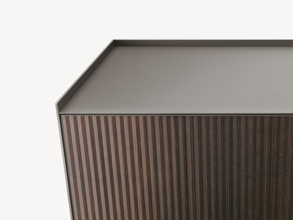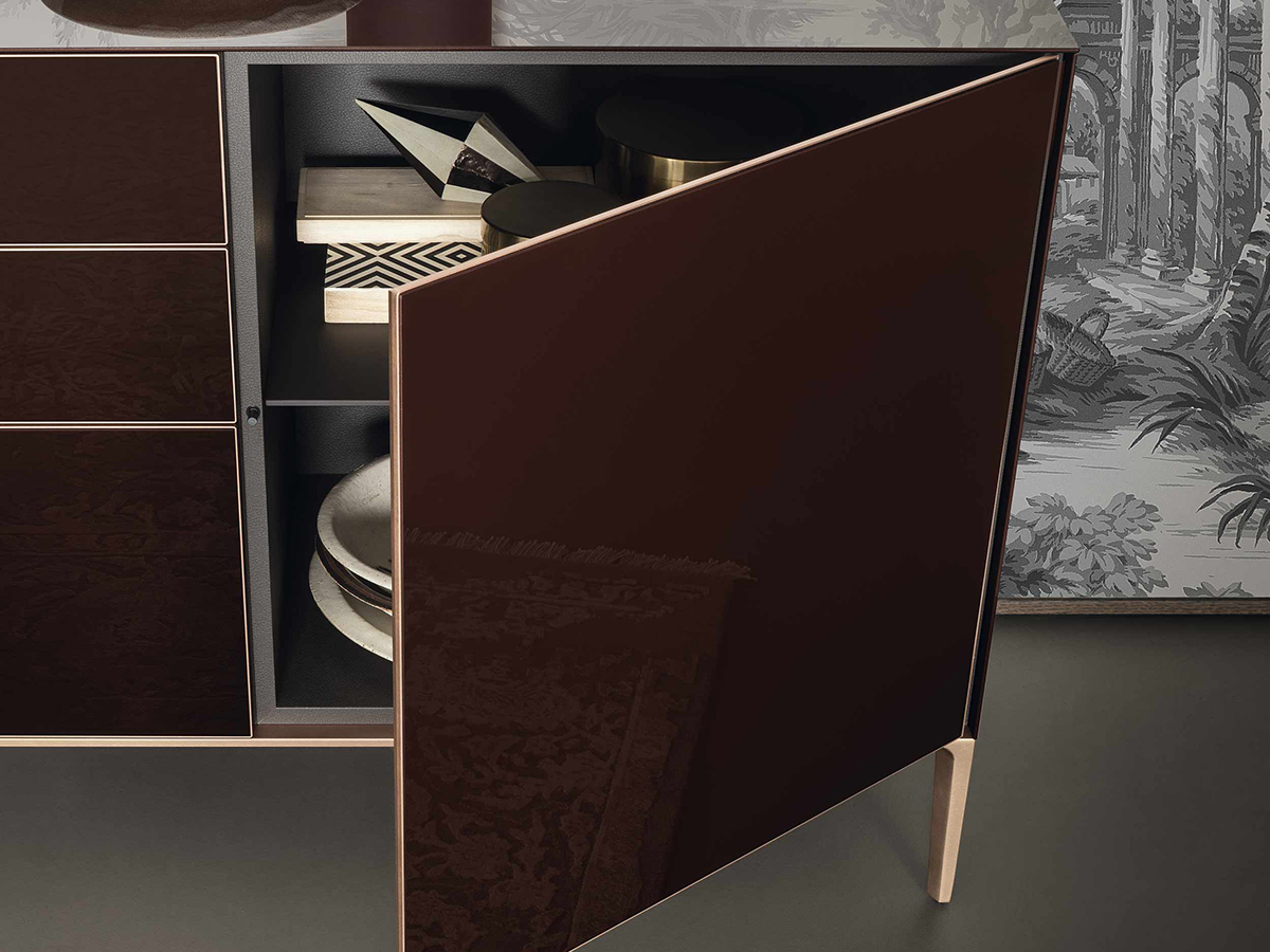The Self Up sideboard is an articulation of the Self storage system, the cornerstone of the Rimadesio proposal for the living area and beyond. Supported by thin and elegant aluminium feet, Self Up is a storage unit characterized by the utmost formal lightness. Leaning on a real furnishing system, Self Up allows an almost infinite variety of compositions: it can also take the form of a sideboard or chest of drawers, it can provide for the insertion of open compartments or drawers and can provide for doors and structure a great variety of finishes, ensured by the 70 colors available for the finishes thanks to Rimadesio's Ecolorsystem program. The doors can also be made of glass or ribbed wood, with a pleasant and refined retro effect.