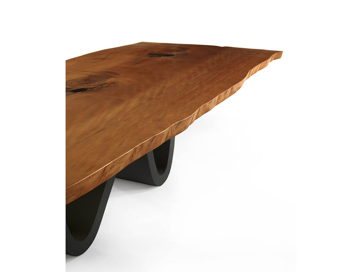 The Riva1920 company has always stood out for its ability to work wood, transforming it into a real work of art, without exception. Each element, from the bark to the inner core, is expertly treated to be able to extrapolate the purest essence, the ideal culmination of a piece of furniture that has no equal all over the world. The style of Riva1920 is clearly evident in the Bree and Onda table, an elegant model by Passon & Savorgnani which consists of a top made of solid wood with glued boards with squared sides and combined with a peculiar leg, with a sinuous shape that recalls the sea waves.