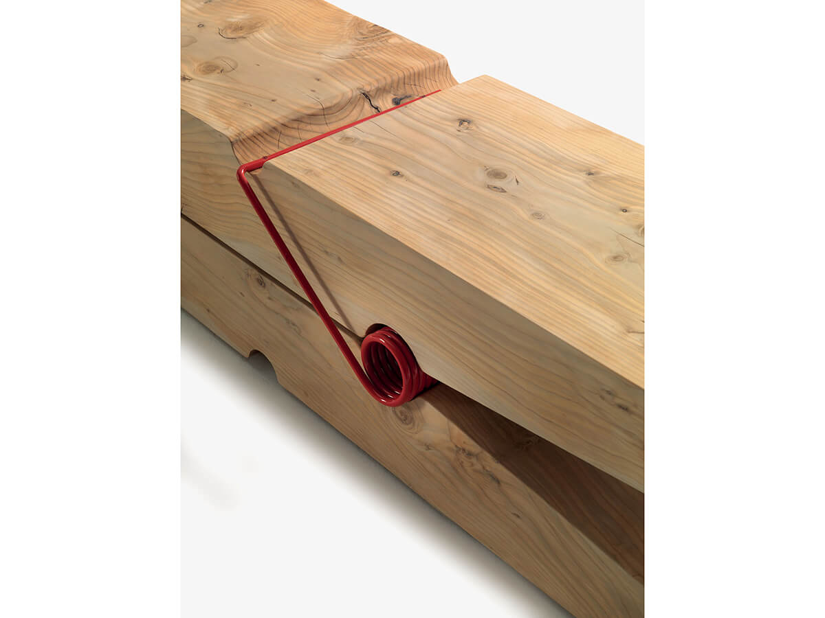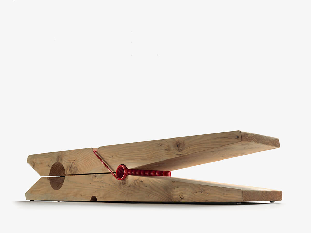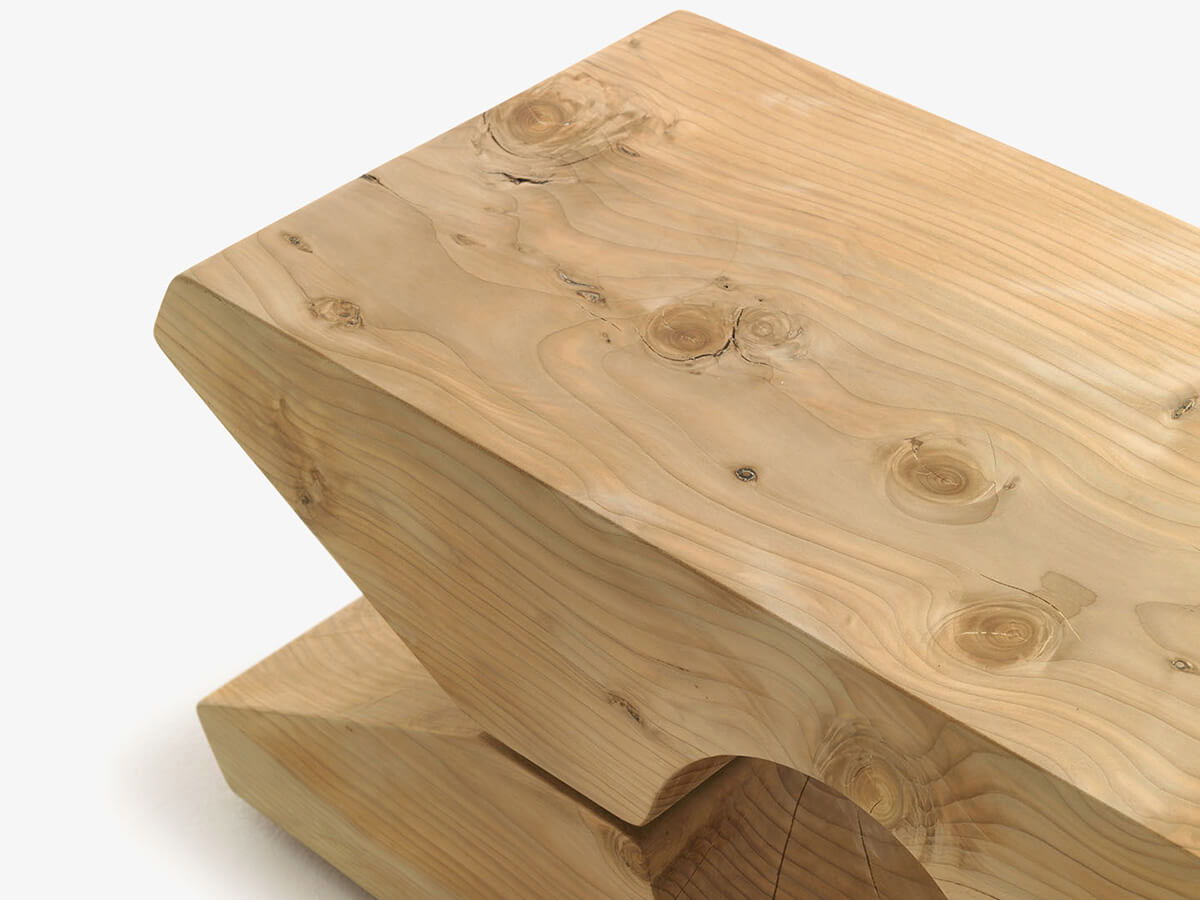 A fun and unconventional piece of furniture, capable of suggesting a design that does not take itself too seriously, while not forgetting quality and fidelity to its own stylistic principles. With Molletta, the Riva1920 company creates a bench in solid scented cedar worked from single blocks, where a sculptural form plays with the typical out-of-scale Pop art. Molletta is available in different sizes: Mollettina, Molletta and Medium. Molletta is a unique element, which goes well with the numerous other works by Riva1920 where craftsmanship finds its place alongside works of incredible value.