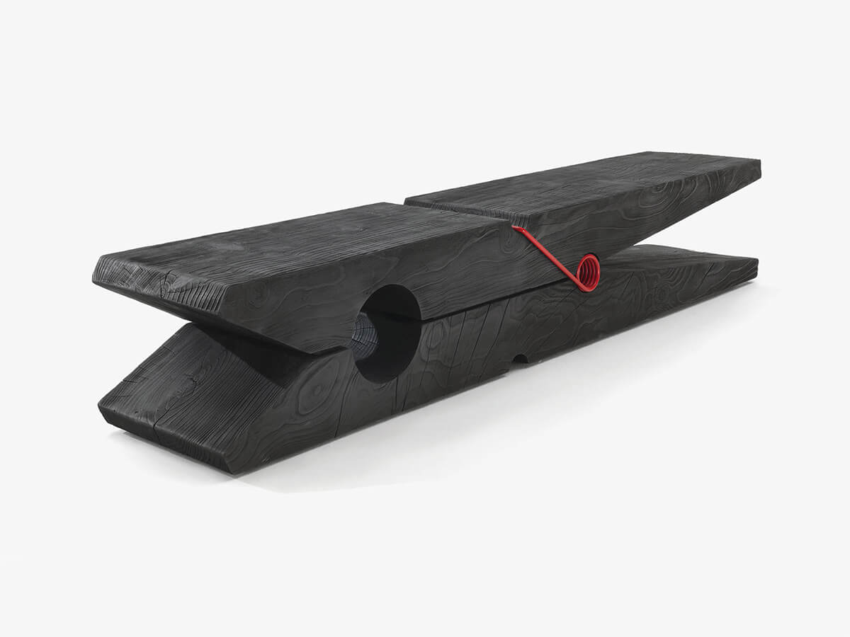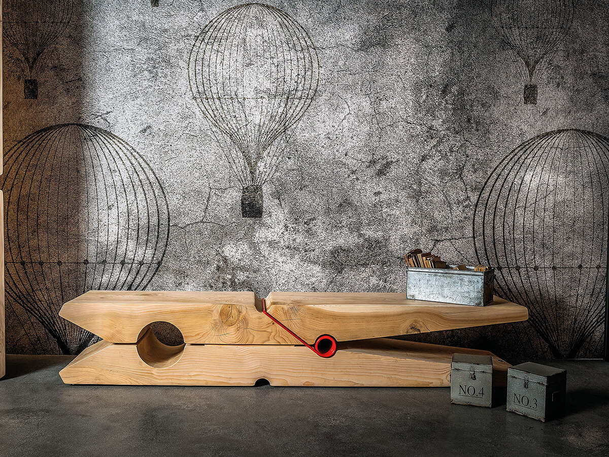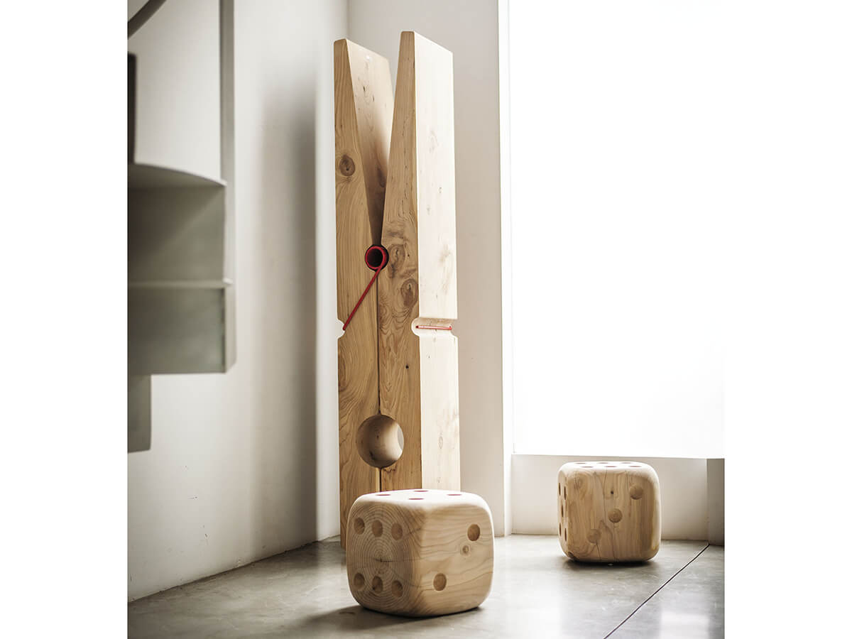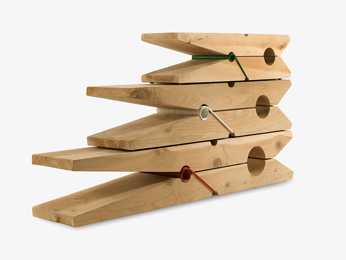 A fun and unconventional piece of furniture, capable of suggesting a design that does not take itself too seriously, while not forgetting quality and fidelity to its own stylistic principles. With Molletta, the Riva1920 company creates a bench in solid scented cedar worked from single blocks, where a sculptural form plays with the typical out-of-scale Pop art. Molletta is available in different sizes: Mollettina, Molletta and Medium. Molletta is a unique element, which goes well with the numerous other works by Riva1920 where craftsmanship finds its place alongside works of incredible value.