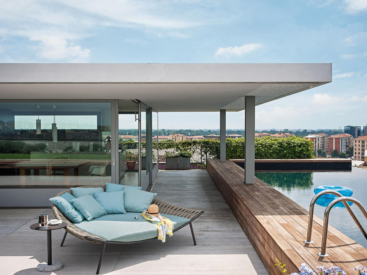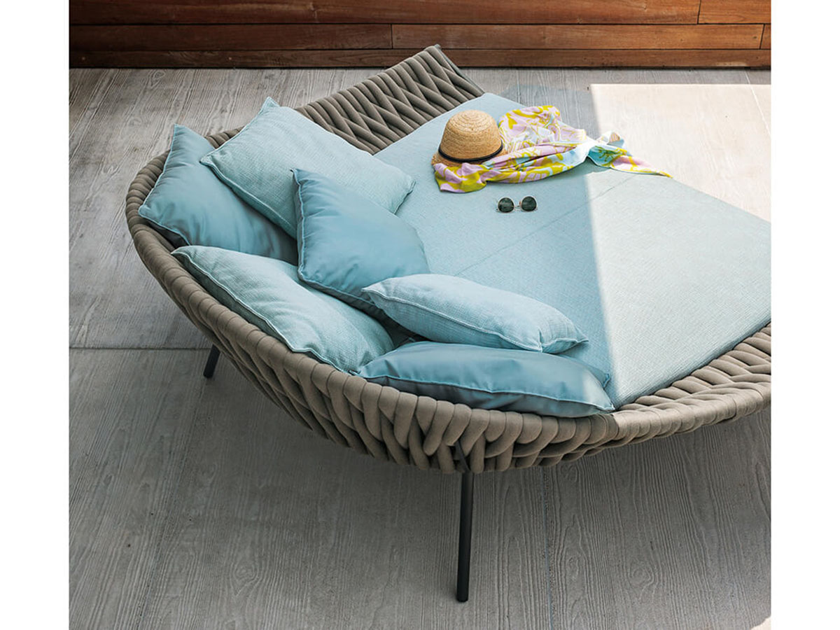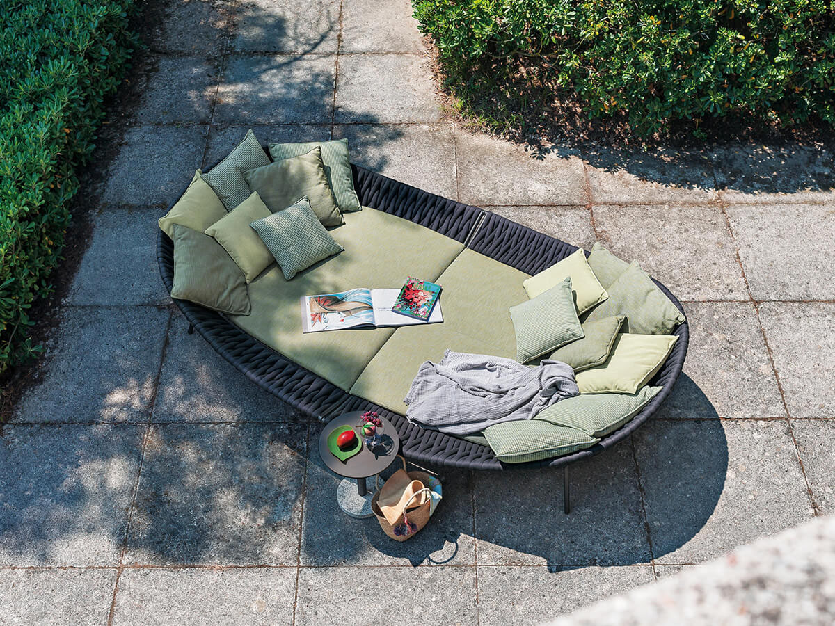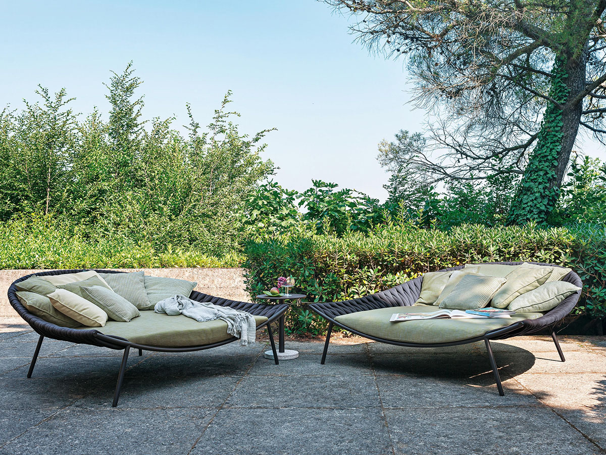 Number one in the production of outdoor furniture, Roda enriches its catalog with a design sofa for the garden, an element that recalls a large bed and at the same time a large chaise longue on which to relax and spend pleasant moments in the open air open. Designed by Gordon Guillaumier, the Arena collection is characterized by softness and the search for comfortable shapes, which welcome the body giving a cozy feeling also thanks to the elliptical shapes and padded tubular meshes. Arena fits well in diversified spaces such as poolside, solariums, terraces and more.