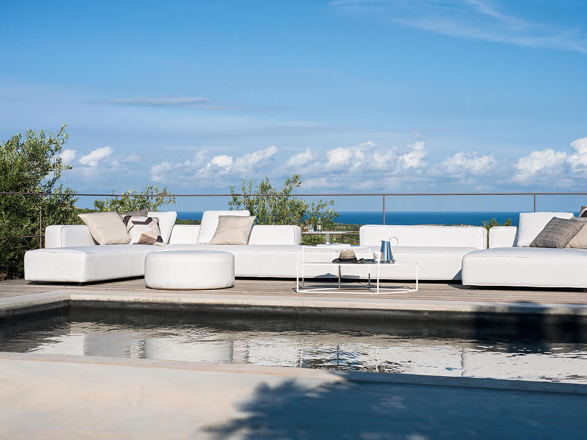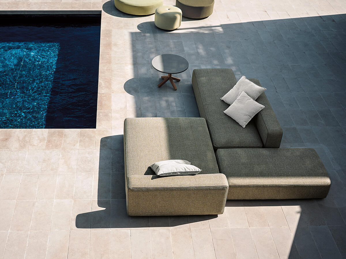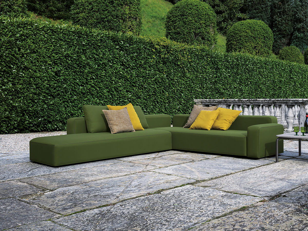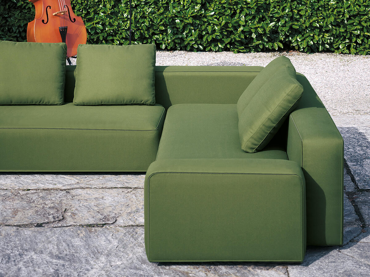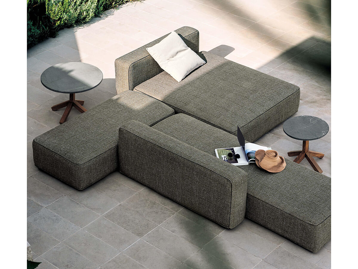 Dandy represents a true icon of the traditional outdoor sofa, redesigned to satisfy the taste of a modern and more essential era, without unnecessary embellishments that could weigh down the central concept of each work. Dandy is a modular seating system that encompasses all the functions of an indoor textile sofa, although it offers fabrics that are perfect for outdoor use. The different modules available make total customization possible, offering polymorphic choices according to environmental needs. The different color choices are also ideal, designed to better reflect the external atmospheres.
