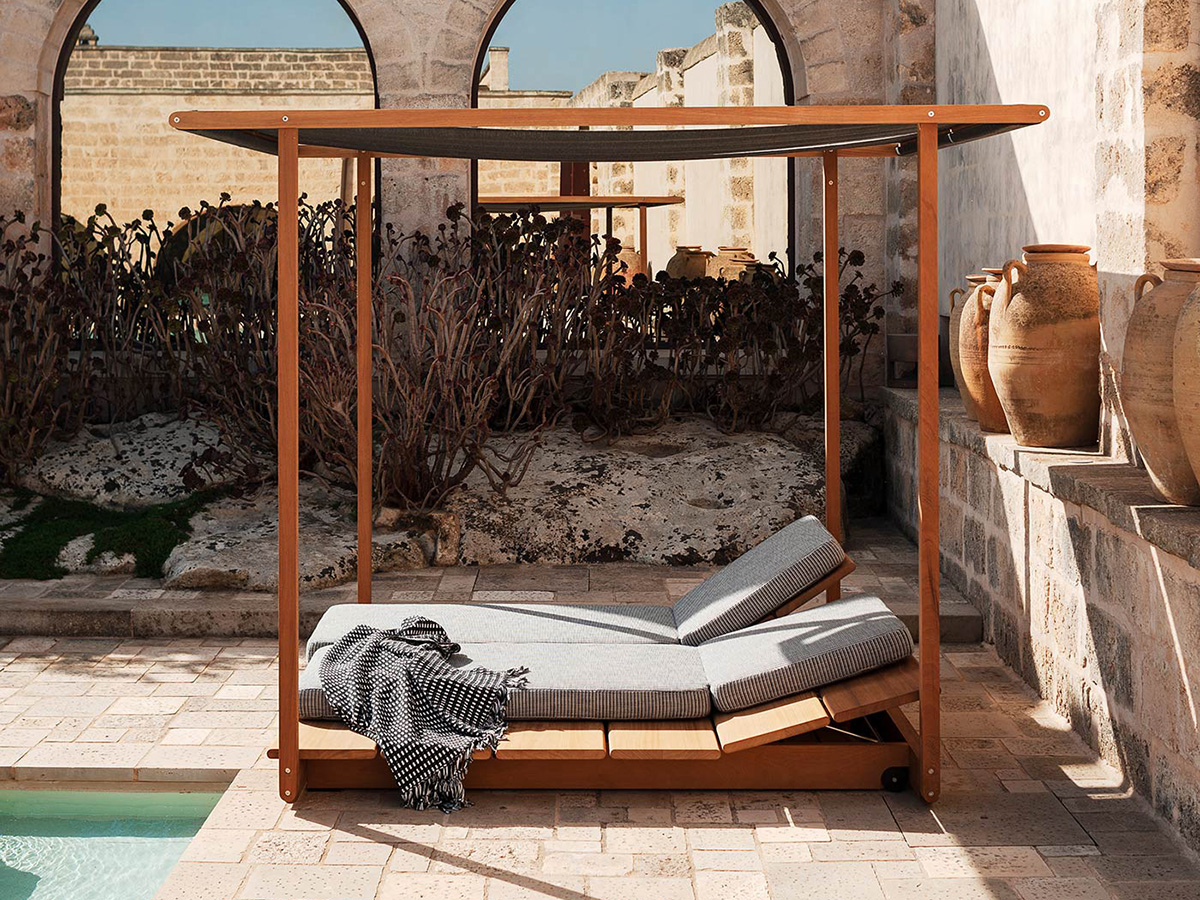 Among Roda's numerous outdoor proposals, Eolie represents a particularly elegant and structured variant, a furnishing element that is well suited to contemporary needs not only in terms of taste but also functionality and adaptability to any context. Eolie is part of an outdoor collection with a refined, precise and essential design that aims to reduce lines to a minimum, leaving room for pure essence. Perfect for those who don't like frills but prefer an essential and functional style. Eolie is characterized by the freedom of the elements which include sun loungers, tables, gazebos and much more to be used by the pool, on a boat or elsewhere depending on the need.