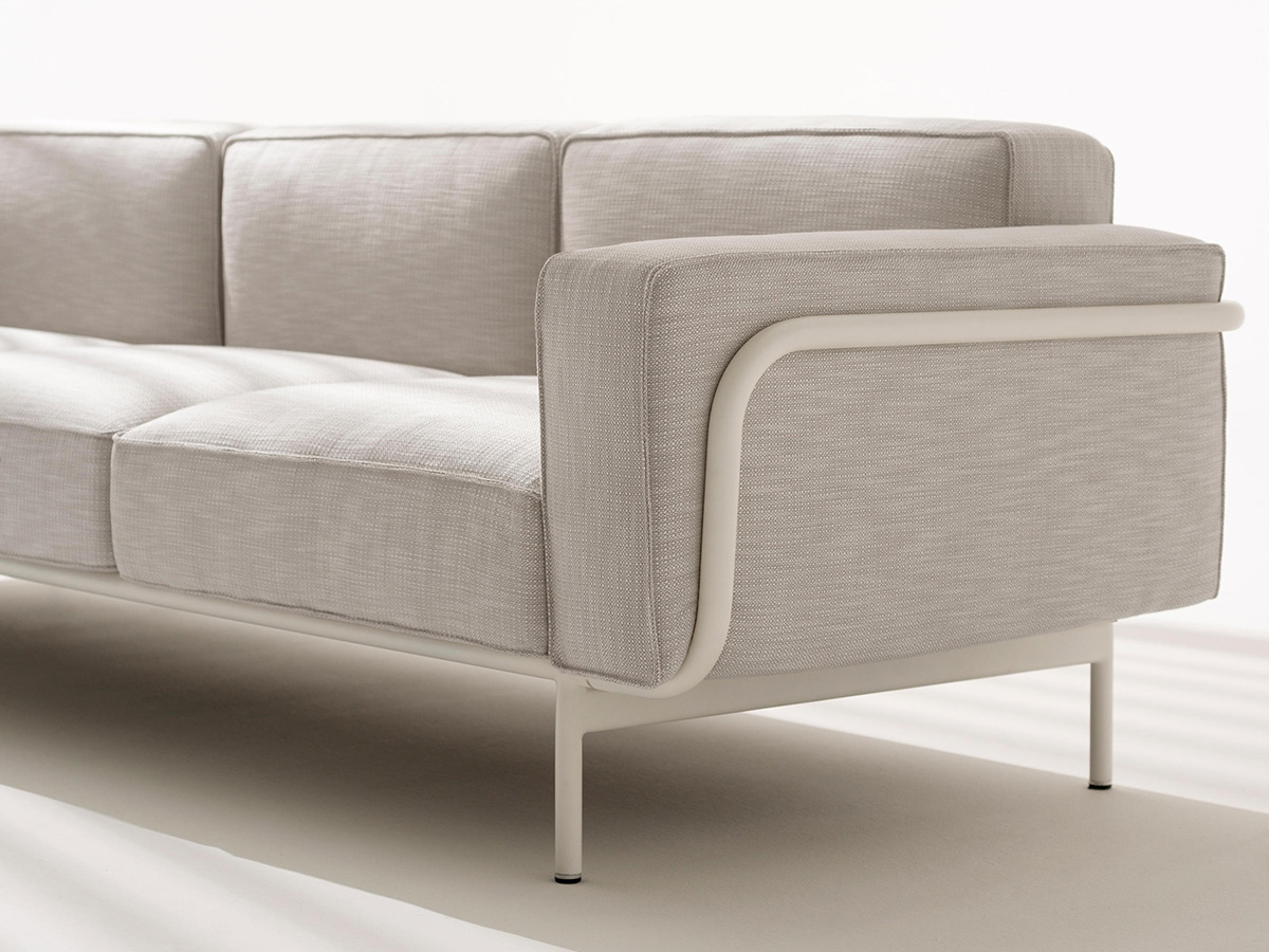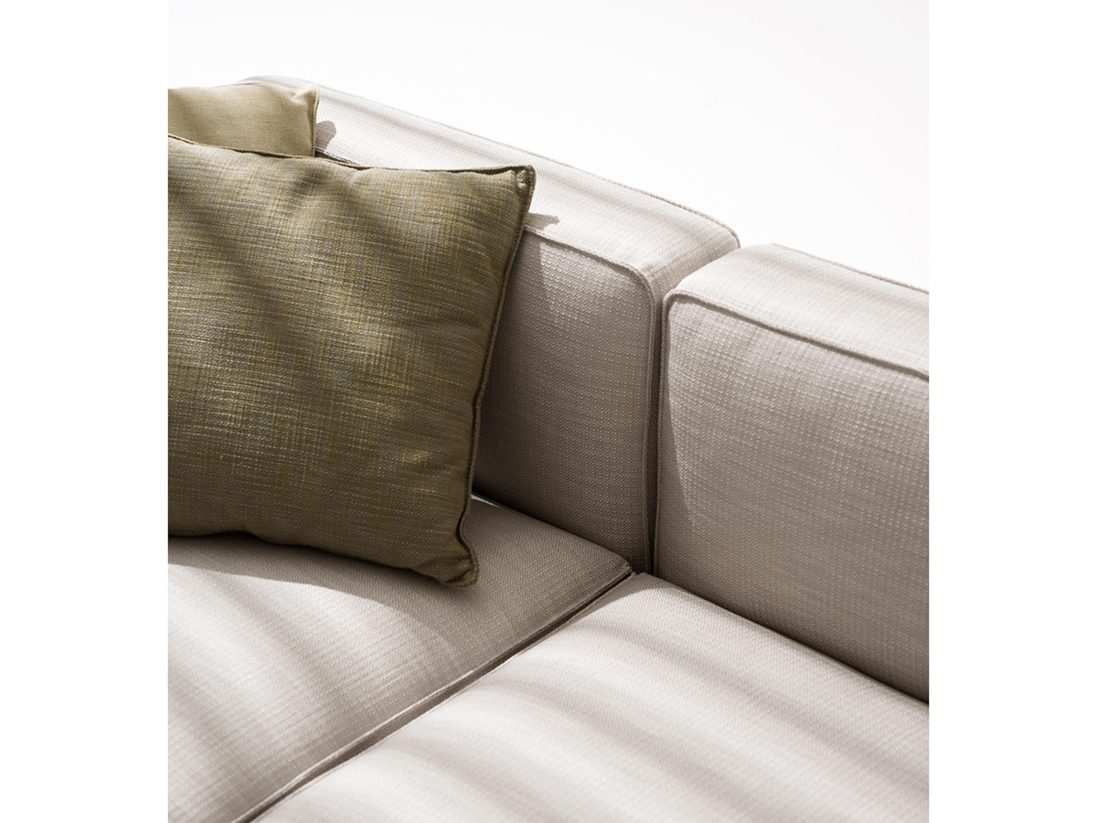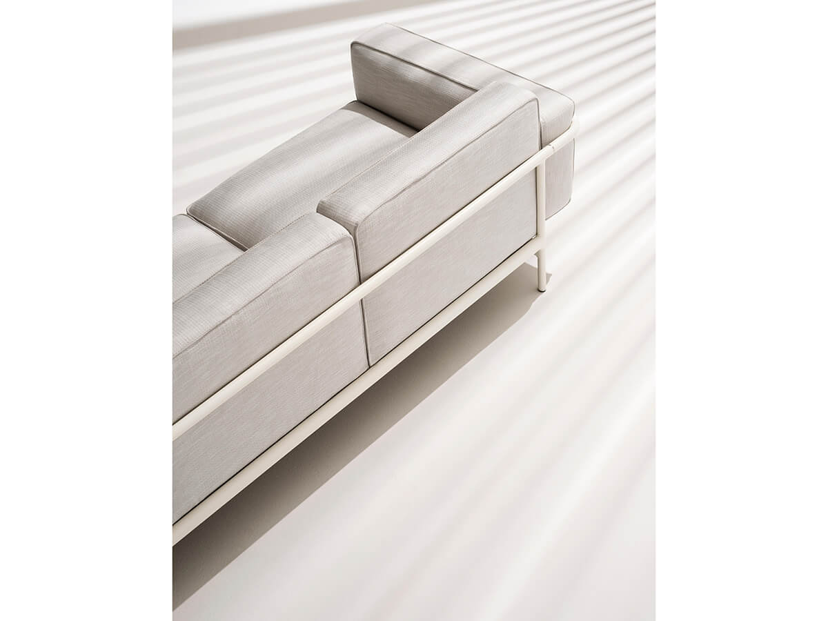 Estendo is an outdoor modular sofa designed by Roda for all those who like to spend pleasant hours outdoors. The structure is in aluminum, designed by Luca Pevere, with a linear plan and extendable modularity to accommodate the flexibility of a functional system of several elements. Among the numerous configurations it is possible to choose whether or not using armrests, to create a corner sofa or more. Estendo differs in the presence of external profiles placed frontally under the seat and at the end of the backrest to allow the connection between the various elements and the lengthening of the sofa itself to reach the desired dimensions.