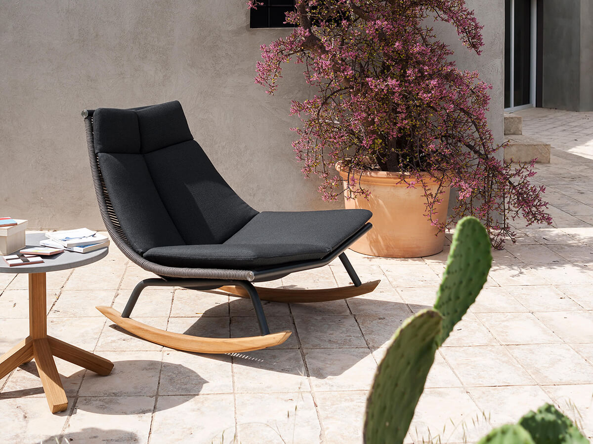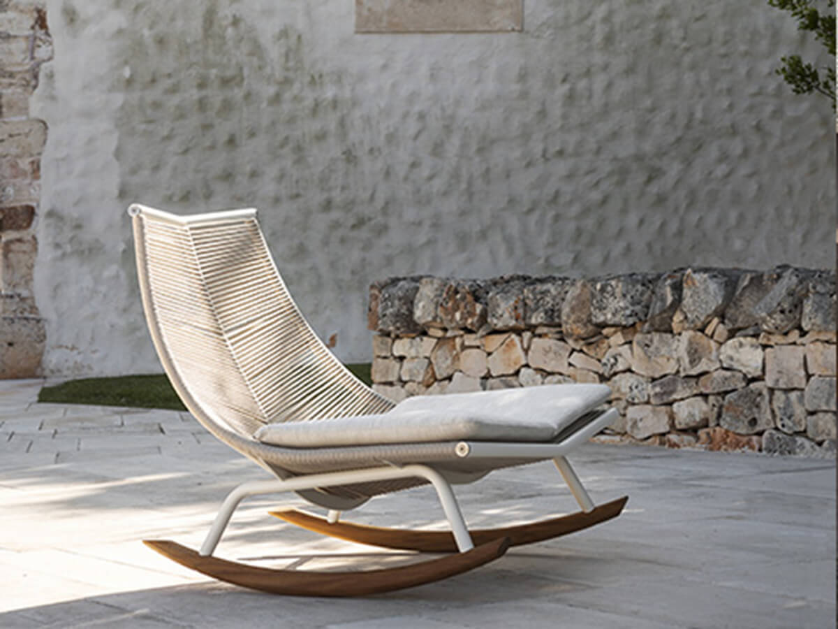 From the Laze collection, comes this sophisticated and generous armchair, whose welcoming silhouette evokes the shape of a leaf. The tubular body, in stainless steel, is very sturdy and compact, an excellent frame on which the polyester filaments are stretched, expertly articulated to create a perfectly ergonomic design furniture. The beauty of Laze also lives in the rocking chair variant and the practical footrest, a triptych capable of creating harmonious and comfortable living spaces, ideal for those who love spending their time outdoors. The numerous color variations help to create the perfect harmony of shades in any environment you wish to place it.