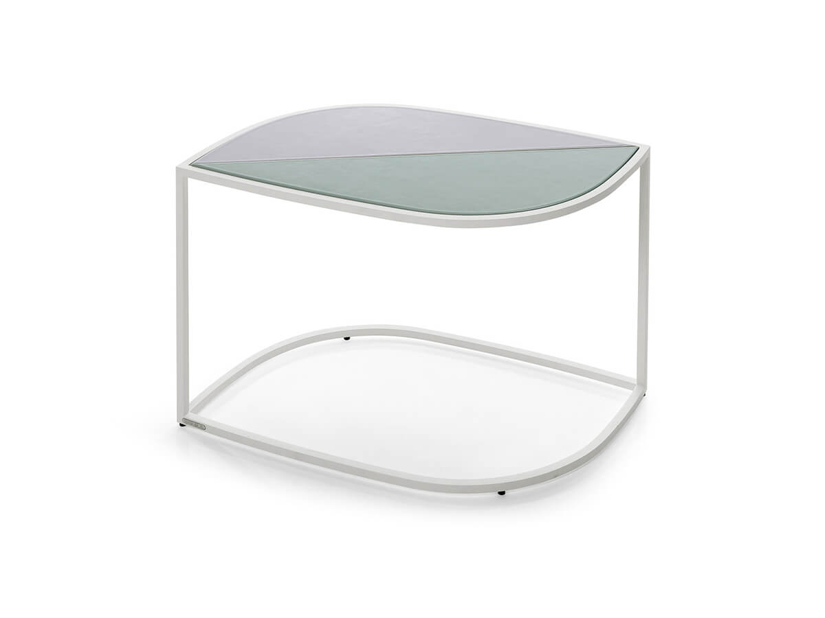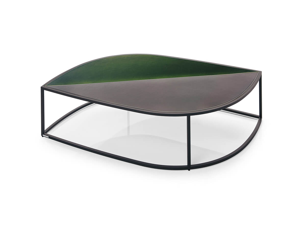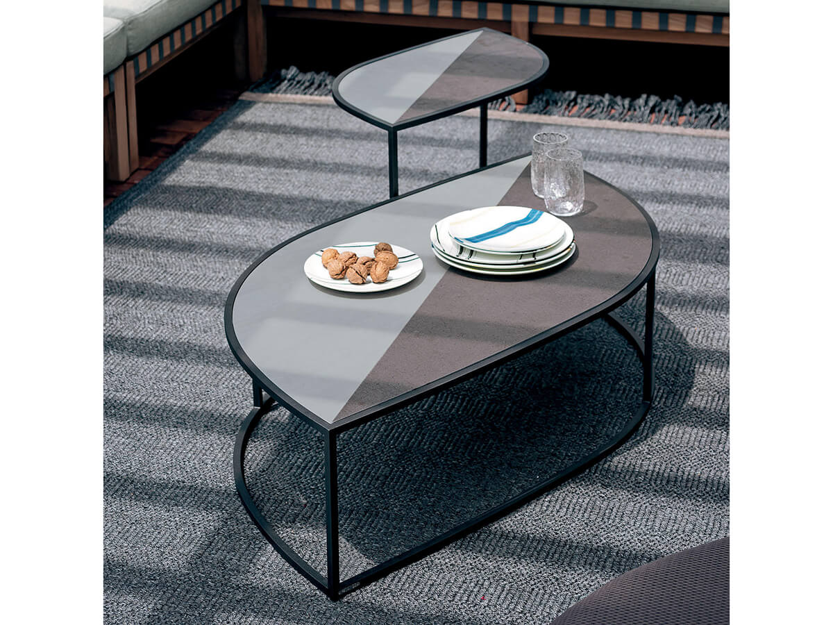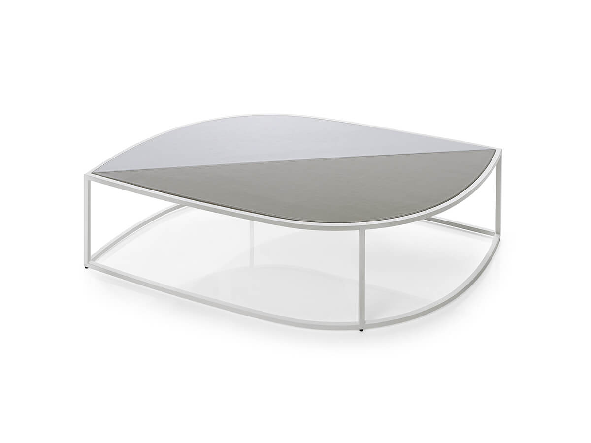 A coffee table with a particularly inspired design, capable of immediately attracting the eye for its simple yet sensitively elaborate shapes. Leaf, as its name suggests, is reminiscent of a leaf falling from trees and, settling, becomes a complement to the outdoors, ideal for gardens, terraces and more. The collection is designed to combine elements of different sizes and colors together in order to recreate a real "carpet" of leaves. The structure is in stainless steel with a shaped stoneware top. The different combinations available are perfect for creating breathtaking compositions.