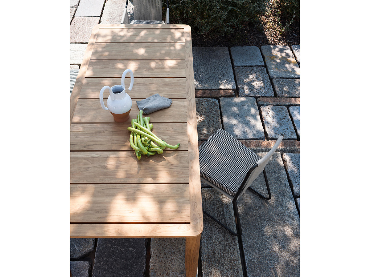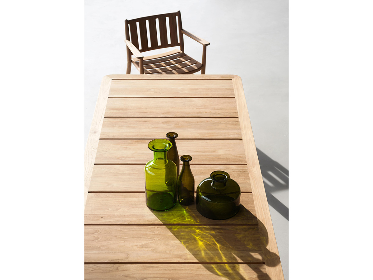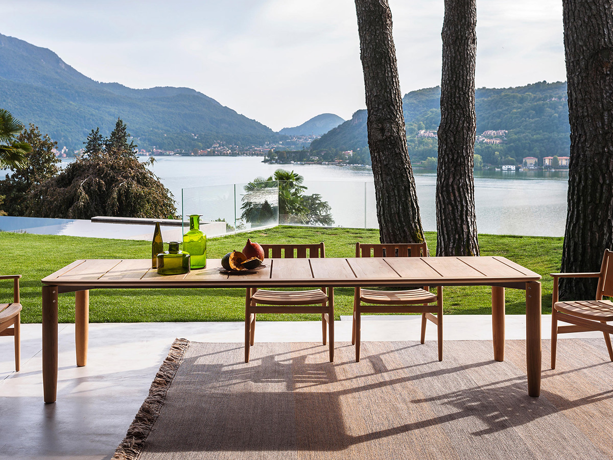 Levante collection was born from the company's desire to create a line of products inspired by teak, a resistant and extremely malleable element that is well suited to outdoor furniture. From this idea, Roda conceived Levante, a complete set of tables, coffee tables and seats that present themselves in a modern and transversal key, ideal for furnishing a yacht patio or any outdoor space. Levante table is available in different sizes and can be combined with a refined chair with armrests, entirely in teak. The lightness of the shapes proposed by Roda gives a very genuine character to the entire collection, placing it in any formal or casual contexts, where a touch of simplicity is desired.
