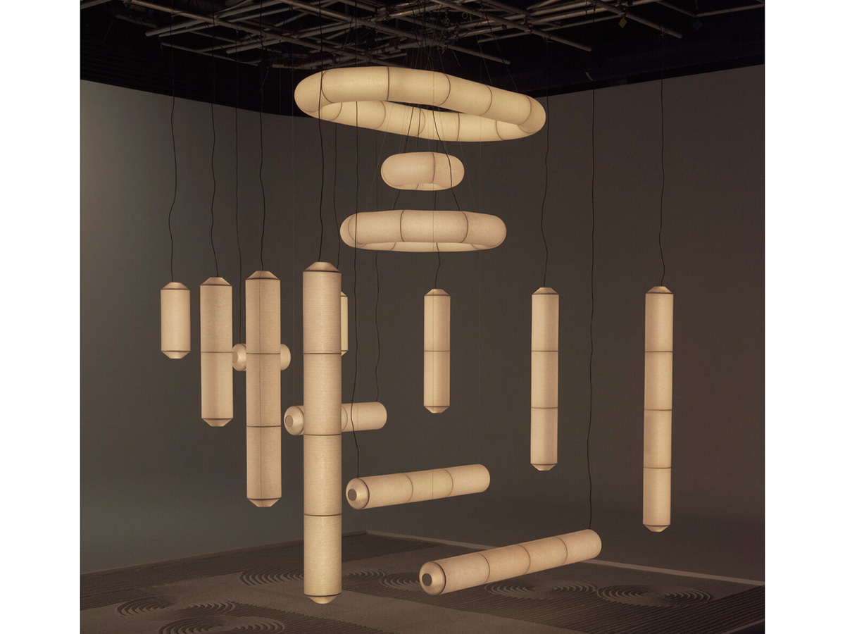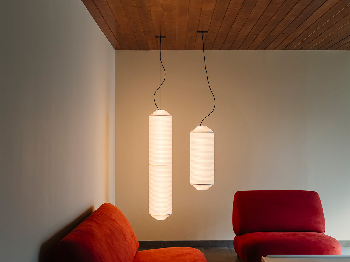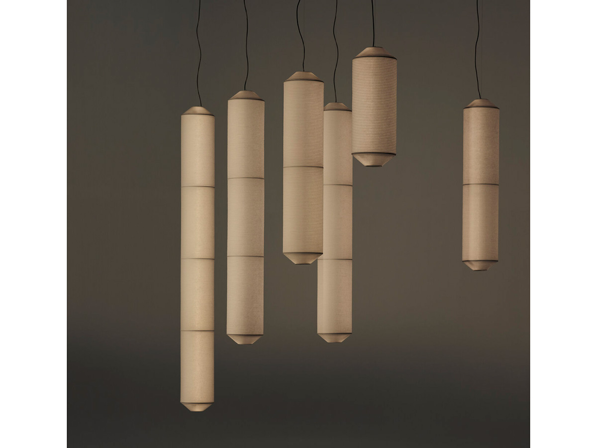 The Tekiò pendant lamp by Santa & Cole combines the charm of traditional manufacturing techniques with the latest LED light technologies which allow you to precisely adjust the intensity of the luminous flux and its color temperature. It is signed by the English designer Anthony Dickens who drew inspiration for this lamp from Japanese craftsmanship, recreating a delicate but scenographic style of typically oriental origin. Tekiò (whose name derives from a Japanese term meaning "adaptation") is available in three different versions: Tekiò Horizontal, which takes the shape of a long cylinder perfect for being positioned above a table or kitchen top, illuminating its surface uniformly; Tekiò Vertical, in which the cylinder is positioned vertically, capable of creating particularly majestic compositions when multiple specimens are presented side by side, and finally Tekiò Circular, with a ring shape.