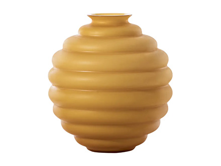 Deco is a vase by Venini that explores the aesthetic dimensions of rhythm. Thanks to an abstraction of sound, aesthetics and concept, the company wanted to express a dynamic concept of sound or, better said, of sound repetition, which like a drop of water inside a pool, propagates, transforming from small to large, and then repeating itself in the small. Overall, Deco is an extremely elegant and functional object, which adapts well to different contexts without ever being excessive or out of place. It acts as a perfect eye-catcher in living or dining contexts, but can also adapt well to night areas of bedrooms and children's bedrooms. Available in different sizes, Deco can be chosen in several colors that the Venini brand offers in a cute and fun assortment.