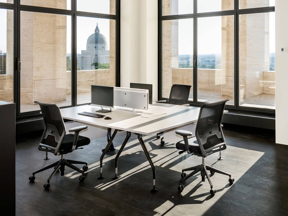 The ID Mesh office chair embodies Vitra's multi-faceted ability to produce furniture for any environment, from home to offices, without neglecting the home office. Symbol of lightness and technical transparency, it mounts on a slender structure, where the swivel base engages on a Flow Motion mechanism with forward inclination and seat depth adjustment. The polyamide structure of the backrest offers a not indifferent support to the back and loins, guaranteeing a unique sitting comfort. The armrests in 2D or 3D have variable width and height and a 360 ° rotation function. Within the ID Chair Concept, Mesh stands out for the purity of the design.