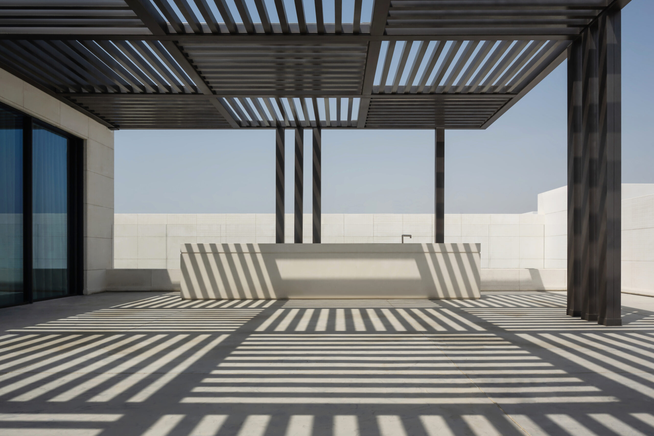 Villa ABK is a suggestive private residence, a sculptural villa where the play of double-height volumes and the reflections of light from the skylights define the internal architectural spaces in a mix of light and shadow, full and empty.