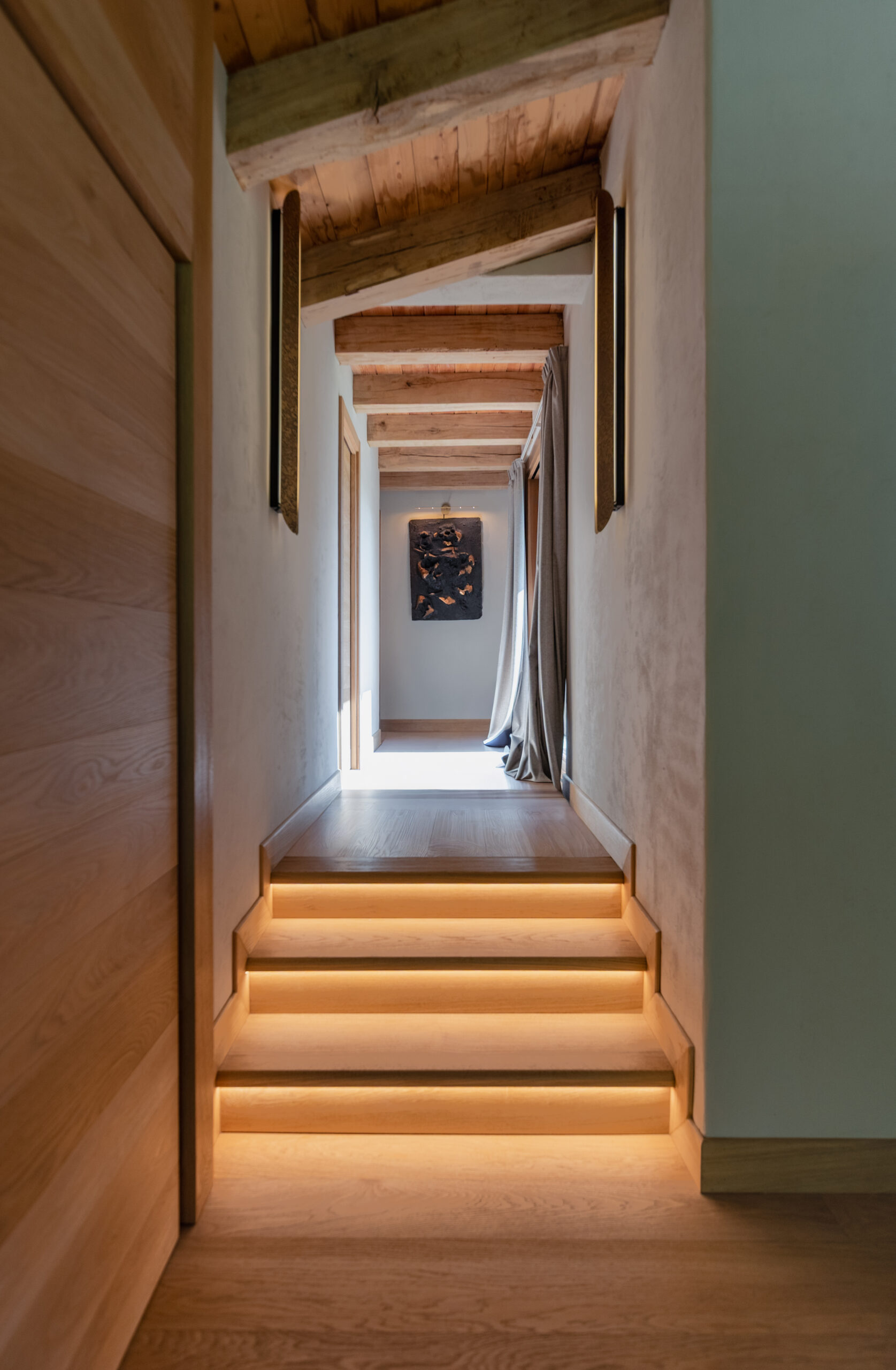 An exceptional ski resort, a picturesque mountain village, and a must-stop destination at the foot of Mont Blanc, Courmayeur has always been a magnet for mountaineering enthusiasts. Renowned for the SkyWay Monte Bianco cable car, it offers breathtaking views of the Matterhorn and Monte Rosa peaks. La Saxe is an ancient hamlet of Courmayeur, famous for its stone and wooden houses and distinctive architecture that make it an ideal tourist destination — as well as a prestigious holiday retreat, as in the case of this villa, for which Salvioni Design Solutions curated the entire interior design project.