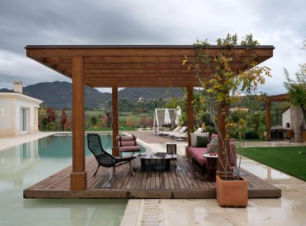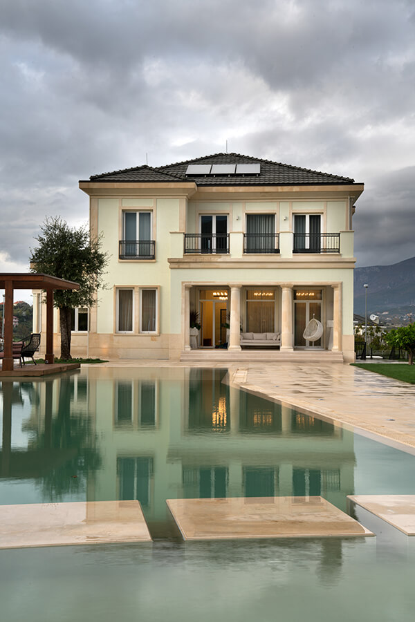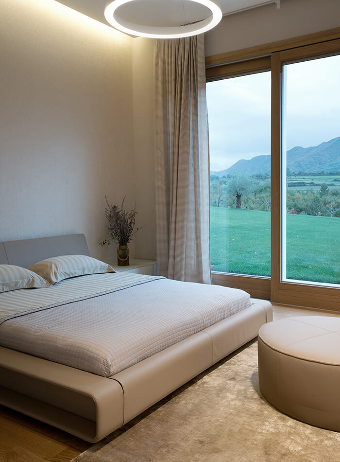 The Tirana villa is located in a very suggestive space, surrounded by an uncontaminated natural landscape, free from infrastructures or architectures. The project, articulated in over 11,200 square meters of land, 640 square meters of three-level Villa and 280 square meters of guest house, fully reflects the style of the Marco Piva and Ego Architecture studio of Egest Goxhaj & Partners, sober and elegant, characterized by a plain wealth of furnishings and finishes. The main goal of the project was to create a home for the intimacy of the family, where the customer could live his daily life sheltered from the social occasions reserved for other places. The resulting interior layout is therefore extremely functional, with light and easily reorganizable elements, where the separations of each environment have been reduced to a minimum. Partner for the supply of furnishings, Salvioni made its own contribution by also creating ad hoc elements for the project.