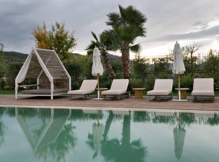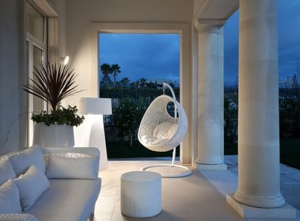 In the outdoor, we find Kettal furnishings, whose simplicity is able to create a relaxation area where it is possible to better enjoy the surrounding landscape.