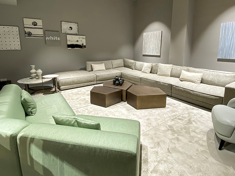 On the first and second floors, an elegant living space welcomes the visitor with soft pastel shades and upholstery. On the – 1 floor it is possible to admire other catalog proposals and a well-assorted material library in different finishes, materials and colors to better view all the possibilities offered by Casamilano during the design phase.