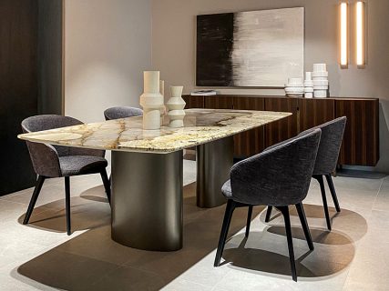 The new 2021 “Interni Milanesi” collection finds its ideal location here, fitting into the metropolitan nuances of the big city with typically 50s / 70s colors and materials and unique works, created by great masters such as Caccia Dominioni, Castiglioni, Zanuso and Gregotti.