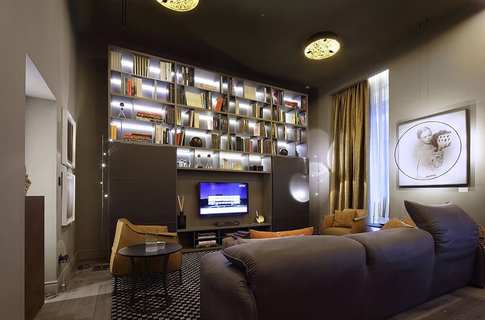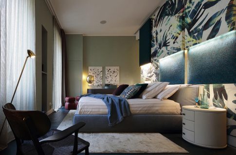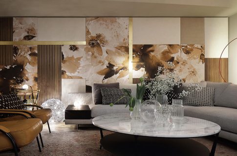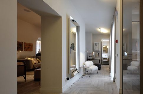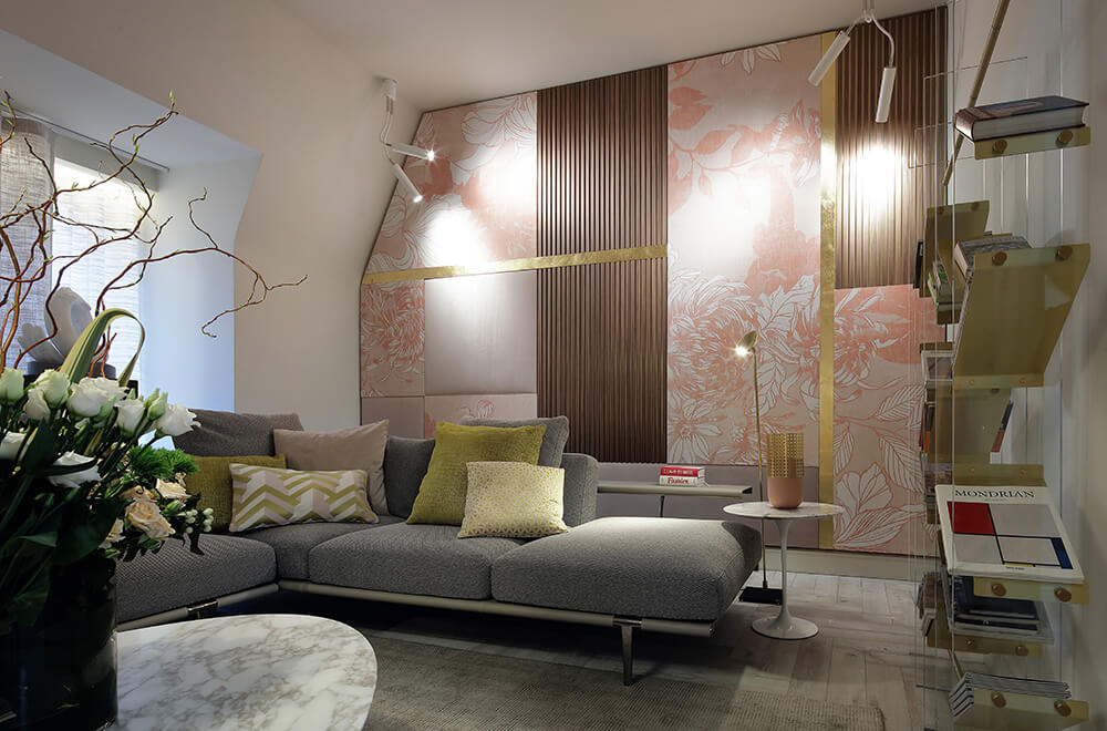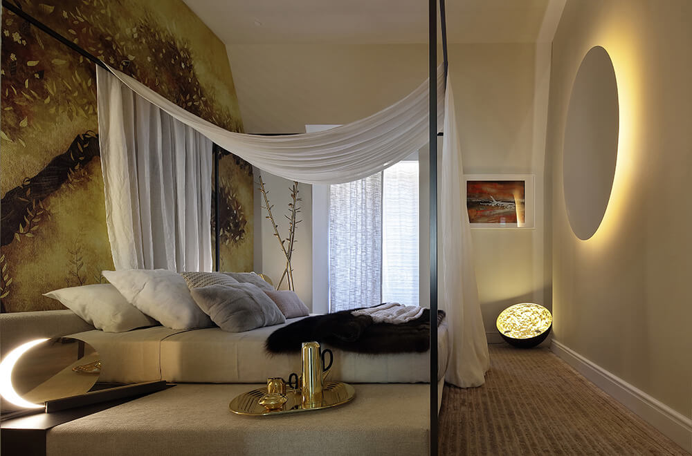 4. DAY LIGHT A suite composed by a large living area and a romantic sleeping area. The space revolves around both environments, in a chromatic composition of neutral tones with the inclusion of powder pink and golden yellow also including all their nuances: a tribute to femininity and romanticism.