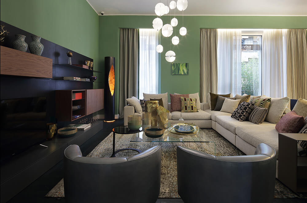 3. DAY COLOUR Green, blue, gold, blue, teal. Colors that mix, intertwine, chase and harmonize in a complete environment as furniture, from the kitchen to the sleeping area, where spaces convey joy and a desire to be lived.
