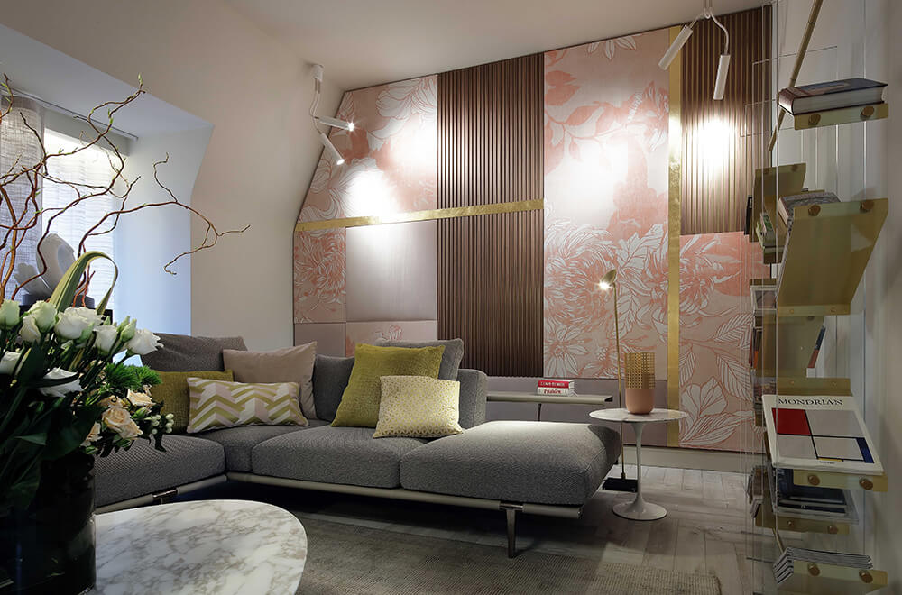 The project is evolving. Five the first proposals, produced in collaboration with the companies WallPepper®, Ottini Group, Roberto Molteni Interior Decoration and HD Surface, which can be integrated and adapted to any area of the house, from the living room to the bedroom.