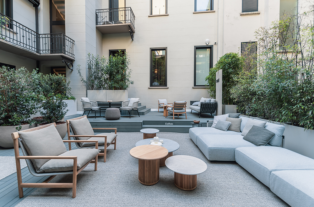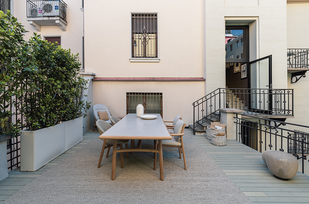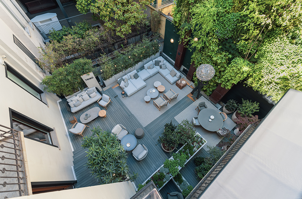 In honor of the 2023 Milan International Furniture Fair, Tribù has collaborated once again with its ten-year partner Salvioni Design Solutions, transforming the prestigious terraces of the Salvioni Milano Durini showroom into a real oasis of outdoor furniture: each one has been furnished to highlight the innovative design and attention to detail that characterize the brand.