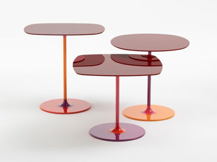 Thierry by Kartell, on the other hand, is a successful example of a coffee table for the living area with soft and delicate shades, ideal for adapting to different contexts.