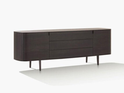 No less interesting is the Symphony sideboard by Poliform whose black elm or oak finish gives life to incredible light effects. Available in different heights and sizes, Symphony can have a marble or wooden top.