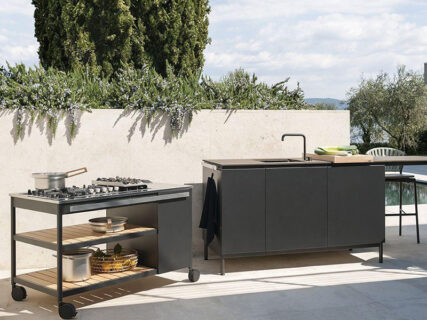 For those who love the outdoors, Roda debuted with Norma, an outdoor kitchen created in collaboration with Ilve. This modular system allows you to create an extremely functional and elegant kitchen space.