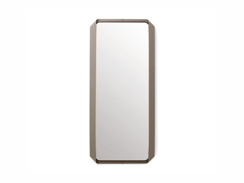 The Shirley mirror by Carlo Colombo for Giorgetti represents the perfect union of metal and leather whose peculiar positioning at the edge of the structure recalls a bow that elegantly encloses the reflecting part in glass with a particular metallic effect.