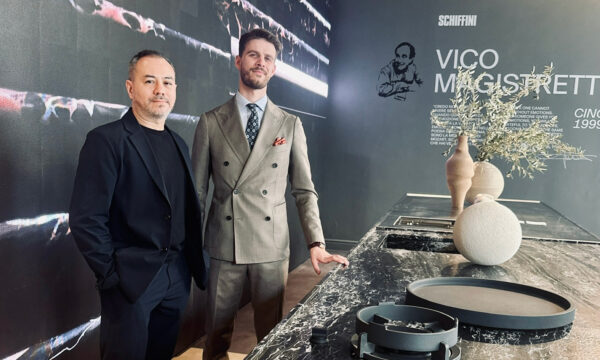 Roberto Lazzeroni introduce due nuove sedute con una sezione delle gambe importante. STIG è un progetto ironico: “me la immagino rivestita in orsetto, all’interno di uno spazio danese, con fuori la neve, davanti a un caminetto acceso, oppure rivestita in pelle nel colore coloniale e le gambe color caffè, all’interno di un riad di Marrakech”, mentre per OLAF “l’ispirazione arriva da Jean Royere e dalla ingenua ironia dei suoi mobili, sono gli anni ’50/’60 del secolo scorso”. Viene naturale accostarle al tavolo da pranzo ISAMU, sempre di Lazzeroni, presentato con nuove finiture in pietra.