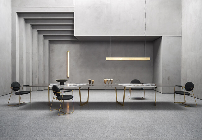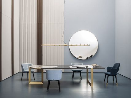 Il Salone del Mobile 2018 ha portato con sé una serie di novità per Baxter. Fra le nuove uscite troviamo il tavolo Pangea, frutto del prezioso innesto di lastre di marmo intervallate da intersezioni metalliche e il mobile Selene, cui si lega tavolo omonimo.