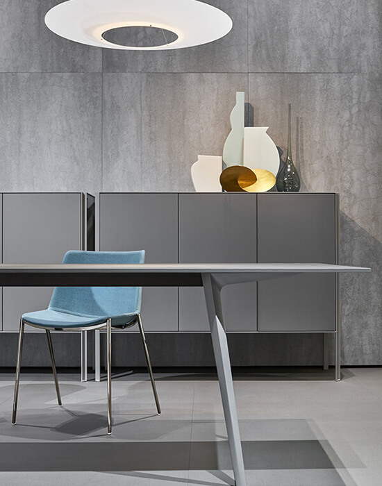 A lei si devono le forme precise e inaspettate, capaci di unire tondo e curvo, spezzato e a segmenti con una lucidità fuori dal comune. Grazie a lei, un tavolo diviene l’assemblarsi di volumi speculari e una madia un eccentrico scafandro provvisto perfino di oblò.