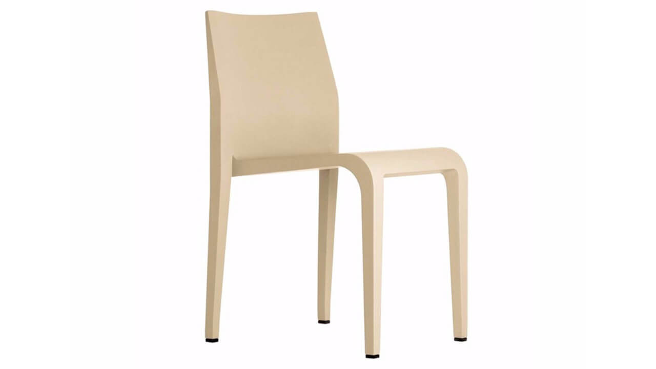 Grazie alla sua struttura in poliuretano stampato a iniezione e impiallacciato con legno di acero bianco, Laleggera è leggera di nome e di fatto. L’eleganza del modello risponde all’estetica smaterializzata degli anni Novanta. Una volta assemblata, la struttura si appresta ad accogliere i fogli di tranciato di un doppio rivestimento sagomato a pressa. Utilizzando un procedimento impiegato nelle ali degli alianti, la sedia viene “farcita” e irrigidita con iniezioni di resina poliuretanica nella parte inferiore delle gambe rendendola resistenza. Laleggera è impilabile, creata con un telaio capace di fornire da solo una forza sufficiente a sostenere il peso di una persona mentre il poliuretano previene il rischio che si imbarchi con una tecnica mutuata dalla costruzione delle ali per alianti. Il telaio, in acero o frassino massello, può essere rivestito con vari tipi di legno oppure rifinito con uno strato di vernice dall’ampia gamma cromatica.
