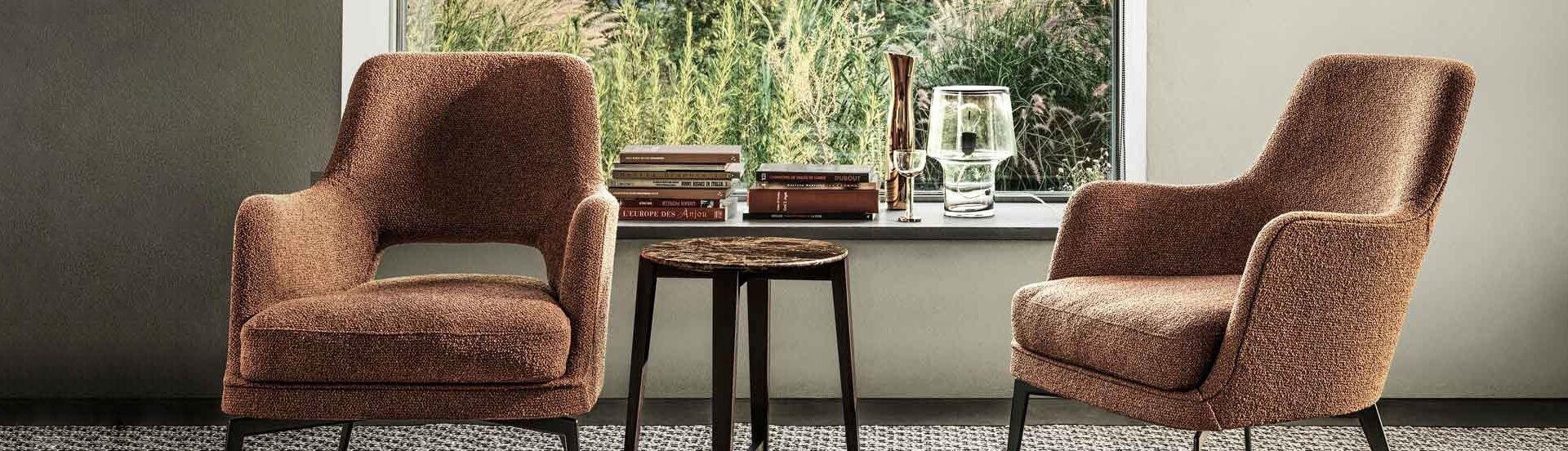 La forza di Flexform consiste nel saper accostare icone del design internazionale a opere sempre nuove e ricche di suggestione. La costante ricerca su materiali e forme danno vita a creazioni di eccellenza, forti della capacità di interpretare il gusto del proprio tempo e del vivere moderno. Le poltrone Flexform comprendono numerose forme e dimensioni, dalle più ridotte a quelle più ampie e comode, sempre dominate da imbottiture confortevoli e utilizzo di materiali di estrema rilevanza come legno massello, metallo, acciaio e fibre naturali. I rivestimenti spaziano dal tessuto alla pelle, cuoio, corda e molto altro ancora al fine di rendere ogni creazione unica. Immancabili i pouf e i tavolini abbinabili, fondamentali per garantire un’esperienza di comfort assoluta. Poltrone, poltroncine e chaise longue regalano sempre il massimo dell’eleganza e della qualità di settore.