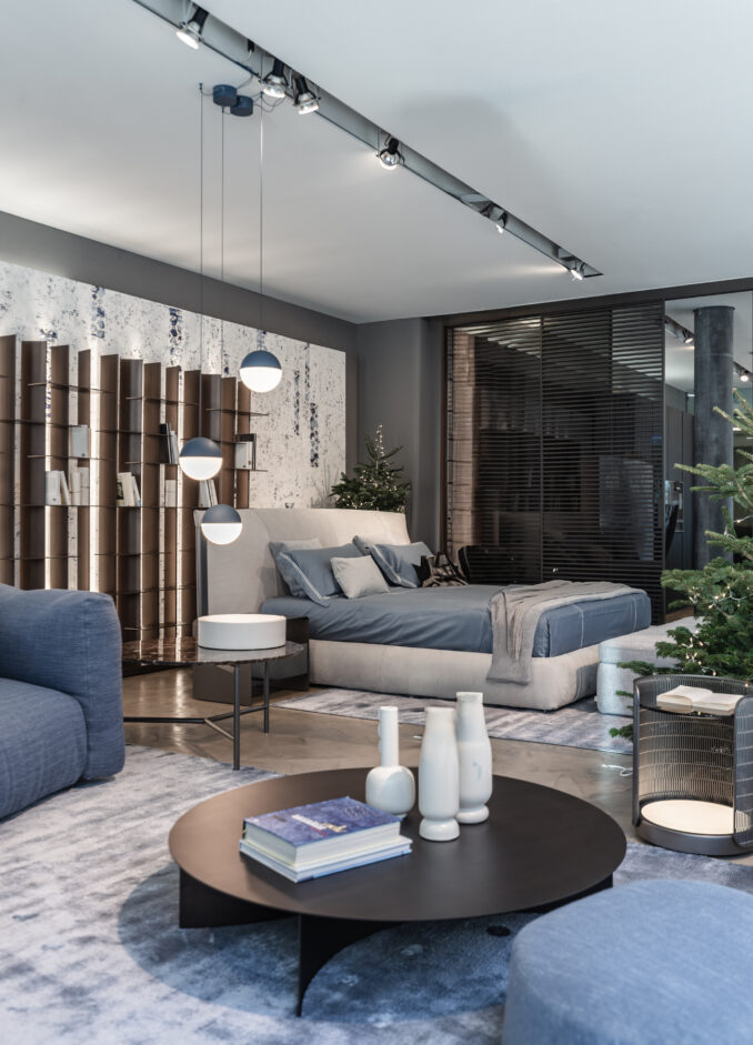 Completano l’arredamento della zona notte armadi, comodini e complementi d’arredo studiati nei dettagli e nelle finiture in modo da integrarsi elegantemente con i prodotti della collezione notte. Flou estende l’esperienza di comfort impiegando il proprio savoir-faire anche alla zona giorno con una collezione di versatili divani componibili. Per l’azienda ricoprono particolare attenzione i materassi, prodotti tutti internamente nei propri stabilimenti.