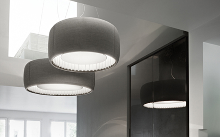 Luceplan e la nuova proposta di lampade a sospensione fonoassorbenti