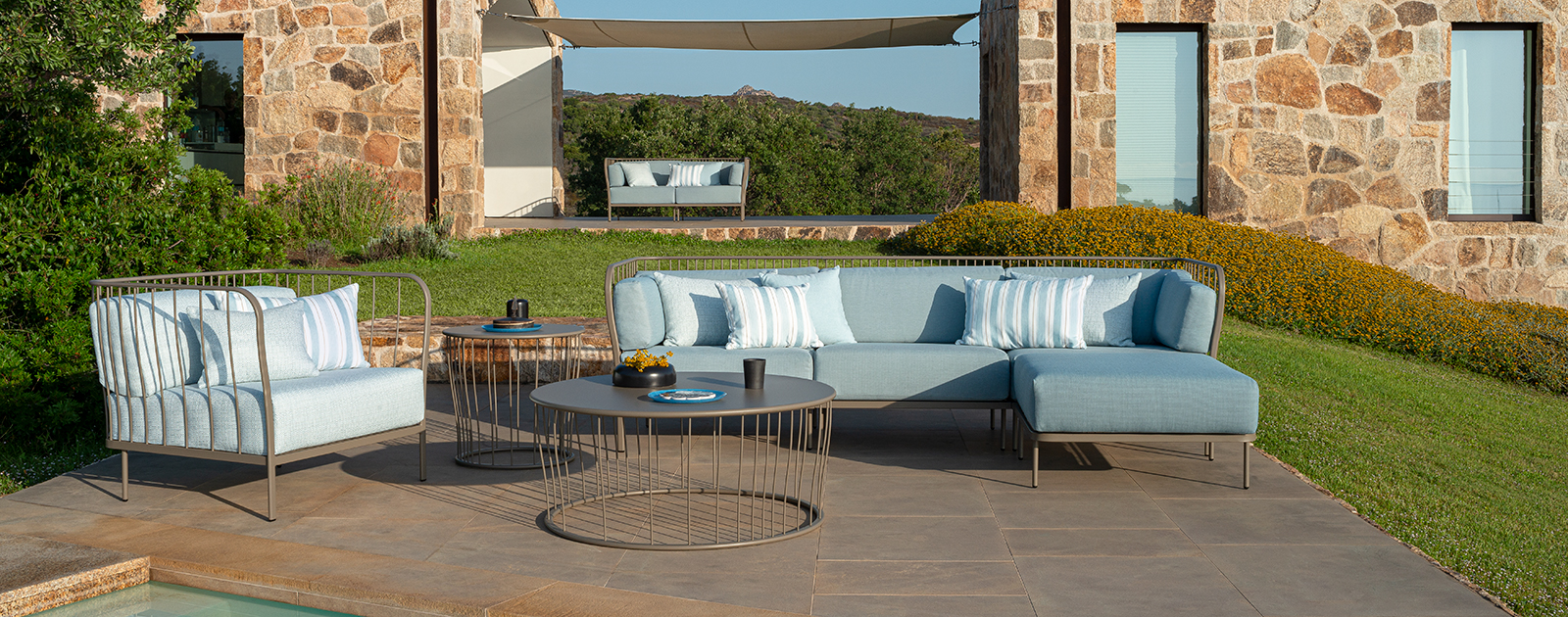 Emu dispone anche di un’ampia selezione di divani da esterno in metallo, come il divano Ivy di Paola Navone, in maglia di lamiera d’acciaio, o il divano Athena, dall’aspetto classico e rassicurante. Completano l’offerta Emu gli ombrelloni da esterno modello Shade, disponibili in varie dimensioni, e un’ampia serie di complementi come lampade per outdoor, panche, dondoli da giardino, sgabelli, tavolini e vasi.