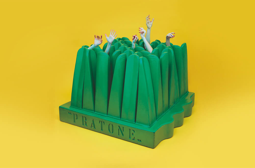 Altro grande successo Gufram è la seduta Pratone di Giorgio Ceretti, Pietro Derossi e Riccardo Rosso. Tutti questi prodotti furono parte della collezione “I Multipli”, realizzata all’epoca in edizione limitata. Dopo essere entrata temporaneamente nel Gruppo Poltrona Frau, Gufram è oggi di proprietà di Sandra Vezza che ne ha trasferito la sede a Barolo e ne ha rilanciato gli antichi fermenti creativi attraverso collaborazioni con marchi come Moschino o il progetto Toilet Paper di Maurizio Cattelan.