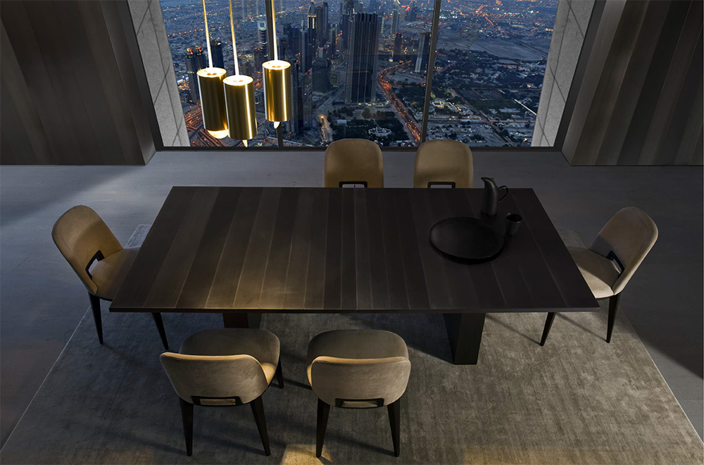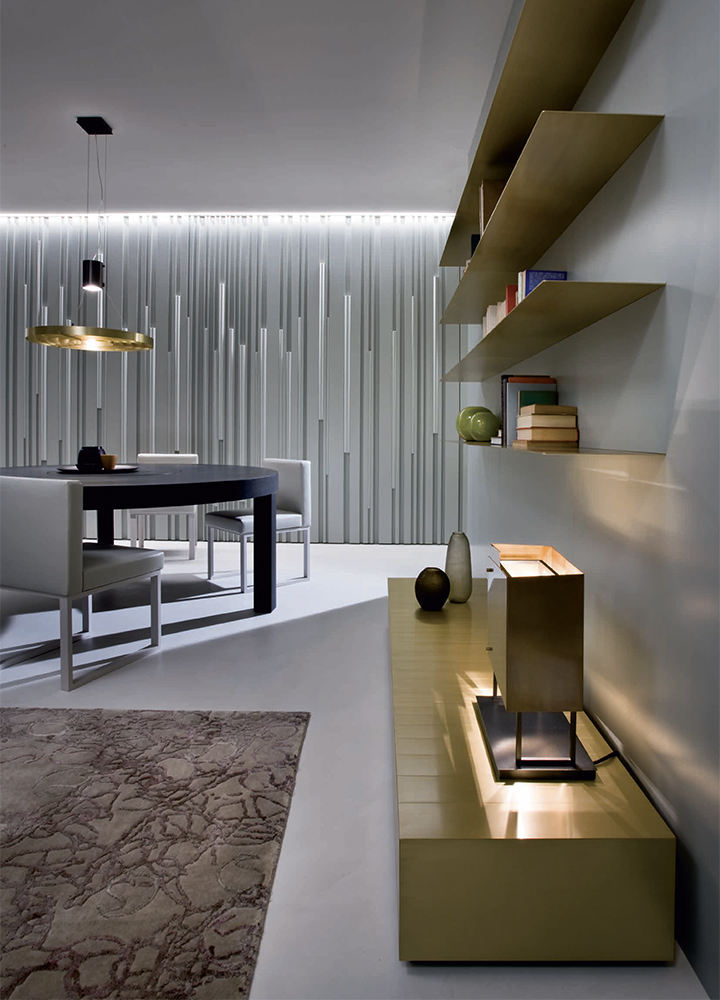 Nascono così prodotti come le madie e le credenze Stars, impreziosite dall’uso di metalli pregiati, tavoli e tavolini come quelli della serie SA dello studio Sottsass Associati, ma anche elementi strutturali quali porte, porte scorrevoli e boiserie. Molto apprezzata è anche la collezione di sofisticate lampade, che presta particolare attenzione alle finiture metalliche quali rame e ottone. Il catalogo Laurameroni comprende anche una cucina di lusso, il modello Bellagio, caratterizzata anch’essa dall’uso di materiali raffinati e dalla completa artigianalità.