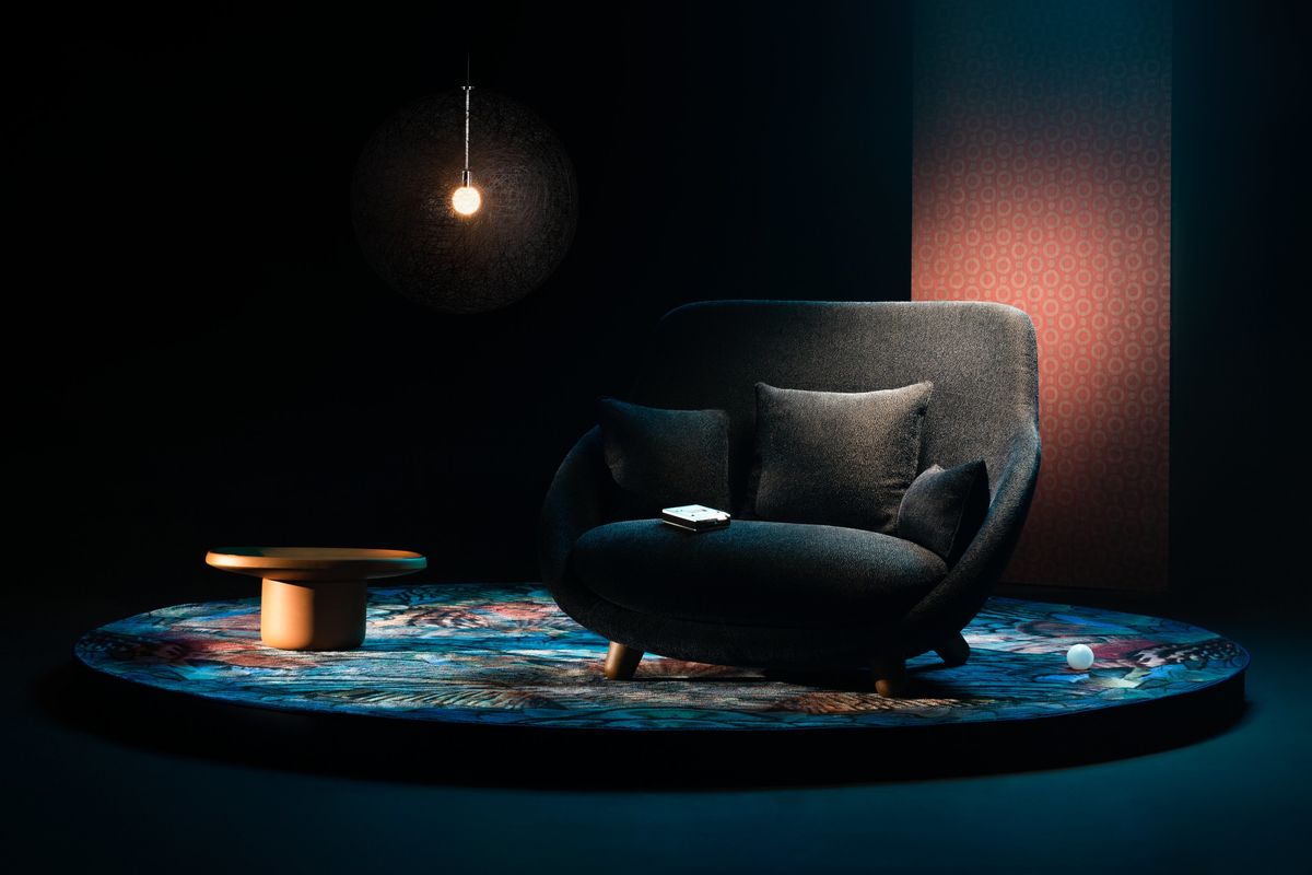 Moooi Carpets sfrutta invece i progressi della stampa ad alta definizione per proporre tappeti di forte valenza artistica, decorati con immagini psichedeliche ed evocative. I mobili Moooi, infine, trasportano lo stesso approccio creativo in tutte le altre zone della casa, proponendo prodotti come la sedia V.I.P. di Wanders e la Smoke Chair di Maarten Baas, che riproduce l’effetto del legno bruciato, o divani inusuali come il modello Charleston, un comodissimo divano chester posizionato in verticale.