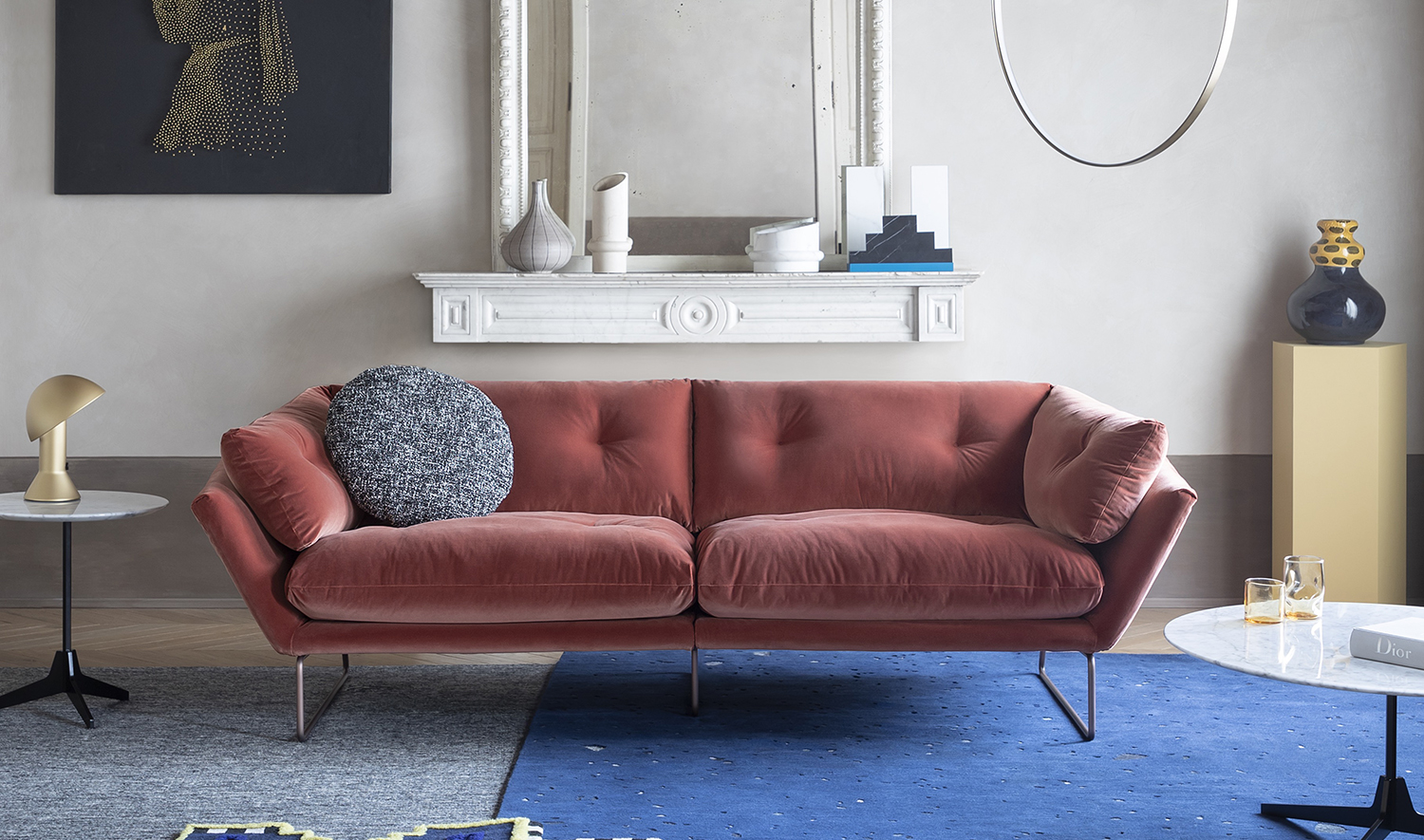 Fra gli imbottiti, indiscusso cavallo di battaglia per le proposte di catalogo, impossibile non citare i divani Philo di Marco Zito e il Geo di Paolo Grosselli le cui forme morbide e accoglienti vengono a loro volta riprese dalle poltrone Kepi di Emilio Nanni, Baby Geo e Chillout di Giuseppe Viganò. Il sapiente uso dei materiali si riflette negli accessori e complementi come i tavolini Ring di Serena Confalonieri, l’Haiku di Marco Zito e lo Ziggy XL di Emilio Nanni.