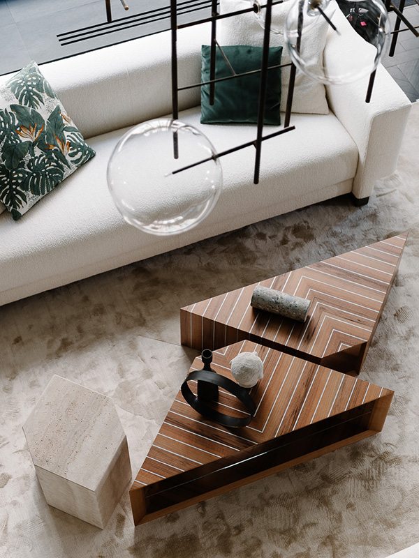 Fra le proposte 2020 spiccano la poltrona Livre di Federica Biasi, un pregiato esempio di imbottito progettato con leggerezza e sapienza formale e il tavolo Manto di Pietro Russo la cui particolare base si innesta perfettamente al piano intarsiato a spina di pesce.