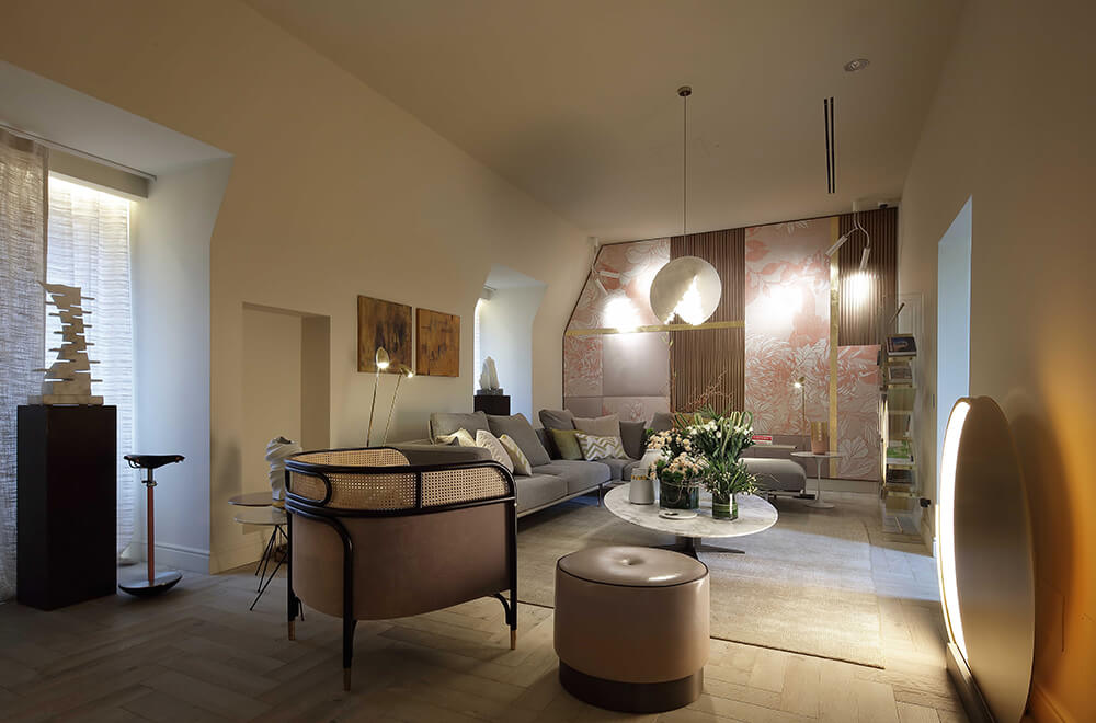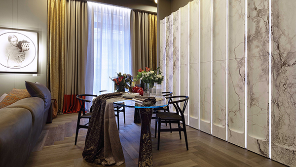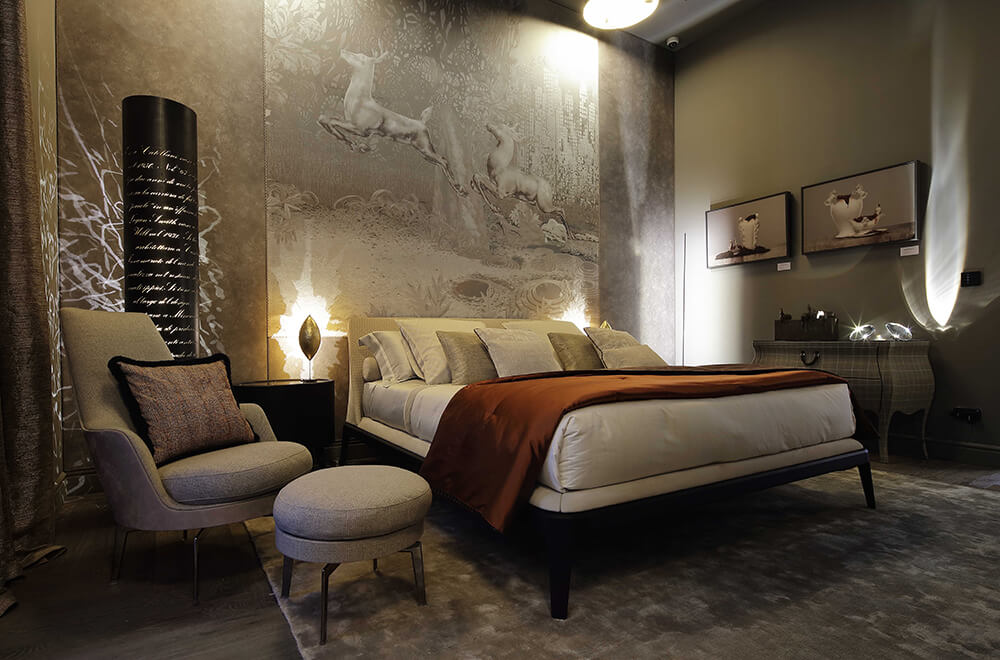 • Si rinnova la collaborazione con WallPepper®, azienda italiana produttrice di carte da parati d’autore, le cui grafiche del nuovo catalogo 2019 si armonizzano perfettamente con gli arredi e diventano tutt’uno con i differenti progetti abitativi proposti da Salvioni Milano Durini.