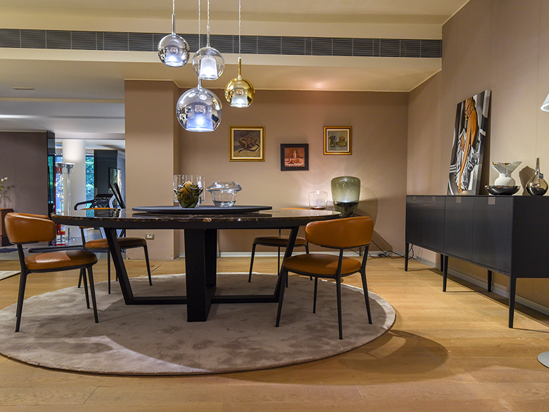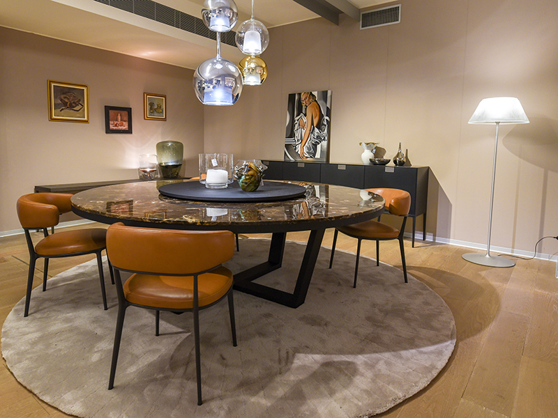 Per Maxalto, la proposta varia da una zona living provvista di divano Dives, tavolino Lithos e poltrone Febo a uno spazio più conviviale, dove il grande tavolo Xilos in marmo viene contornato dalle sedie Caratos. L’utilizzo di complementi coordinati, come le madie Alcor, il tavolino Lithos e la lampada Leukon, comportano in entrambi gli ambienti una perfetta coordinazione fra materiali, colori e forme, garantendo un risultato stilistico d’eccellenza.