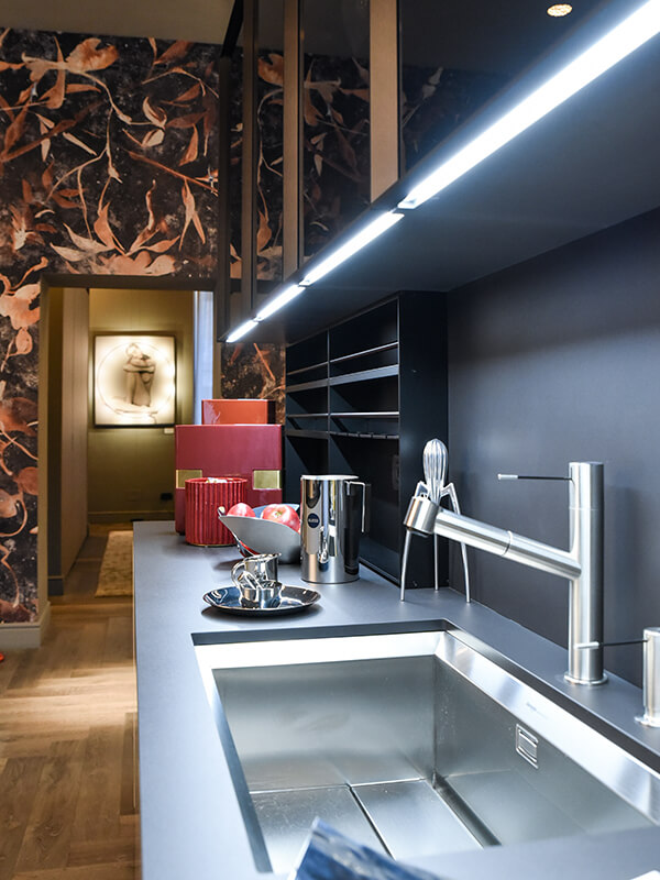 Mobili, luci, colori e materiali arricchiscono ogni stanza, esaltando gli ambienti e mostrando come l’estetica non debba per forza ostacolare le destinazione prima della casa. In un continuum concettuale, i visitatori sono accolti in un percorso dove ogni oggetto può essere guardato, compreso e infine acquistato.
