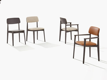 Fra le sedute troviamo Curve, una poltrona dalle linee morbide dove il legno ritrova e riveste grande importanza, alleggerendo e rendendo essenziali struttura e imbottitura. Elegantissima, Curve offre dettagli funzionali ma di grande appeal come la maniglia curva dello schienale, pensato per impreziosire il lato posteriore. La linea Curve trova nuovo slancio anche nelle sedie, eleganti e impreziosite da fini dettagli sartoriali. Non meno interessante è Kaori, le cui linee morbide e volumi generosi sembrano garanzia di un comfort estremo. Peculiare la scelta di utilizzare non una, ma ben due scocche integrate fra loro così da offrire una visuale a “incastro”.