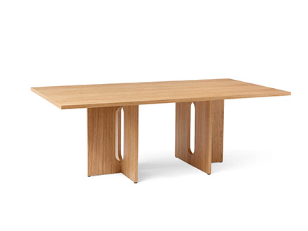 La famiglia di tavoli Androgyne di Audo Copenhagen comprende numerose proposte per la casa fra cui tavoli da pranzo, lounge table e tavolini. L’idea di questa collezione è creare un elemento di unione fra gli spazi della casa, un vero e proprio richiamo estetico che unisca gli ambienti dando vita a un dialogo evidente. La bellezza di questi tavoli consiste nella linea semplice e nell’eleganza delle proporzioni, ulteriormente avvalorata dal segno estetico delle gambe che creano un gioco di volumi leggero e versatile. Le finiture utilizzate spaziano dal legno alla pietra per dare vita al giusto elemento in base al contesto.