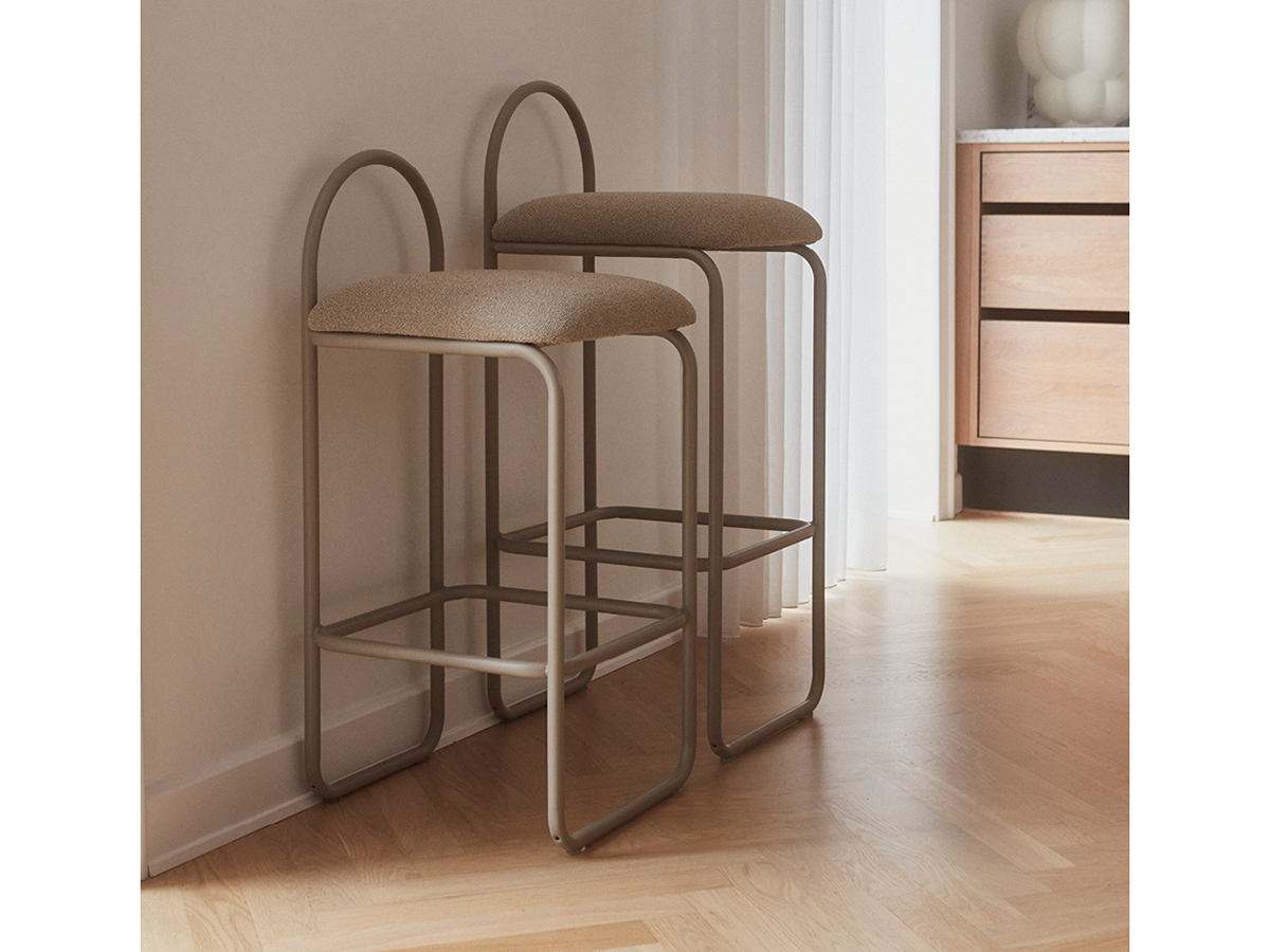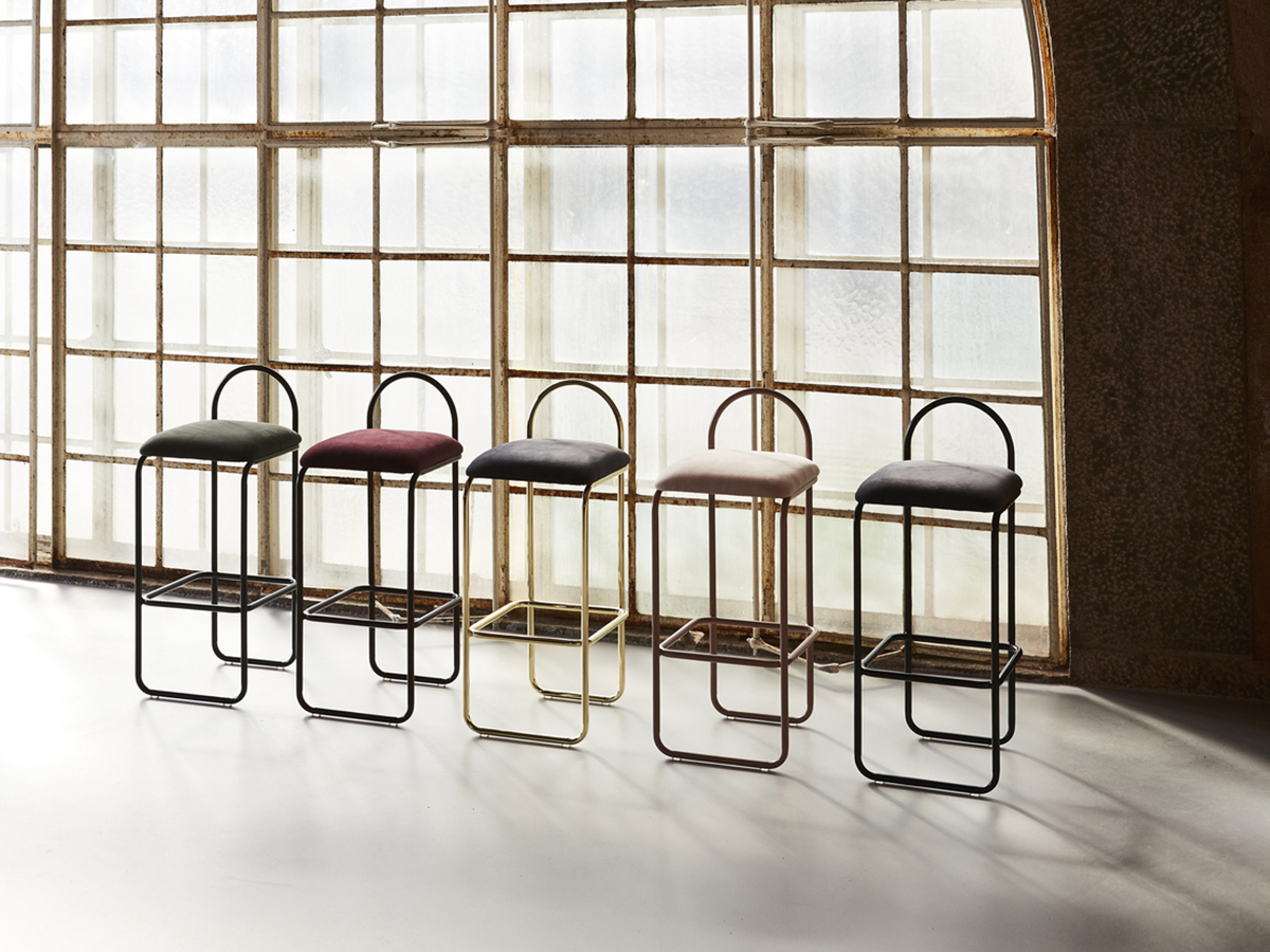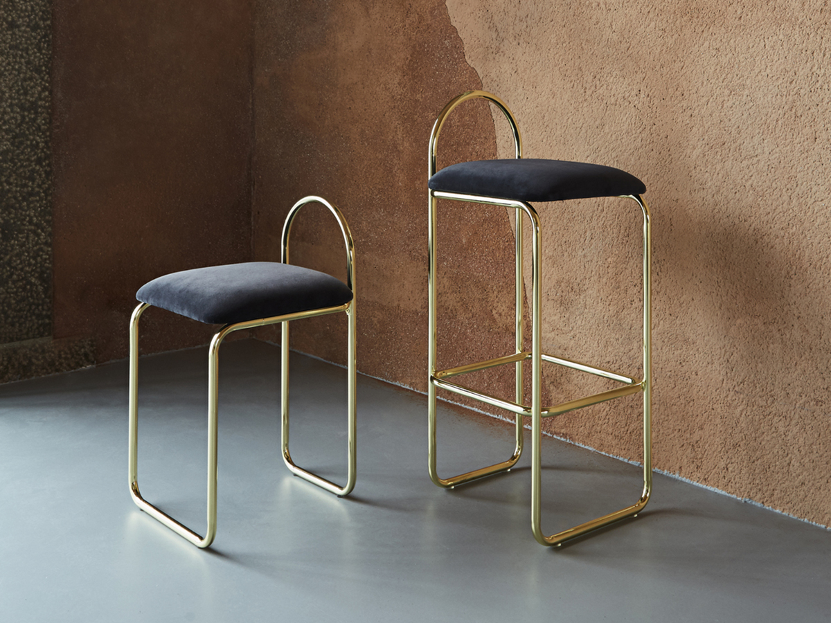 Da una forte ispirazione art decò nasce lo sgabello Angui, prodotto da Aytm grazie a un raffinato e instancabile lavoro di progettazione volto ad affinare le forme onde creare un perfetto bilanciamento fra funzione e sensazione, fra stile ed emozione. Angui si distingue per il comodo sedile imbottito rivestito in pelle effetto seta, lussuosa e particolarmente comoda. La struttura è in tubolare metallico e rievoca mobili disegnati all’inizio del XX secolo. Particolare è l’elemento ovale dello schienale che conferisce all’oggetto un carattere e una personalità uniche e adatte a qualsivoglia ambiente. È disponibile in due altezze e si colloca bene sia attorno a un tavolo alto che a un bancone da bar.