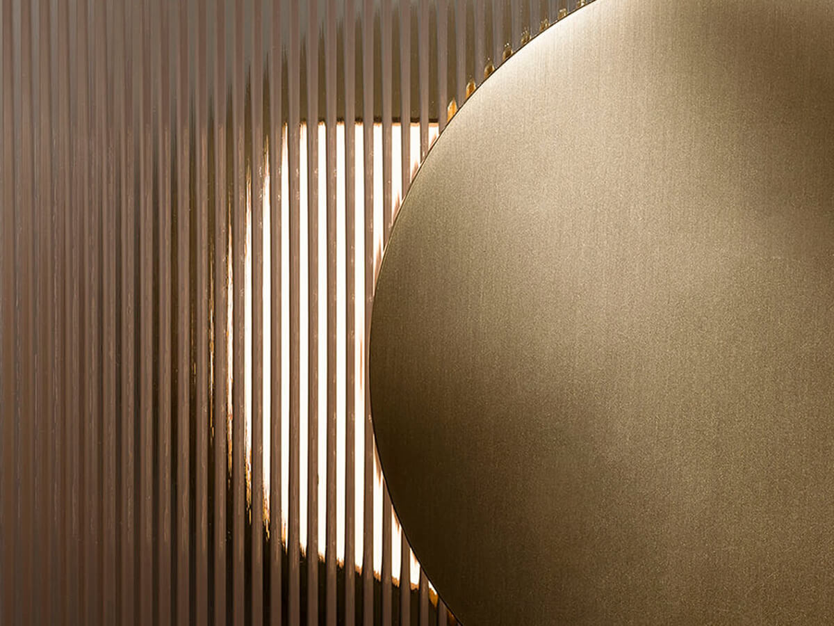 Dal genio di Federico Peri nasce Button, un’idea nuova ed estremamente suggestiva per la casa contemporanea. Il gusto semplice e conciso di Button la colloca perfettamente in ambienti diversificati della casa, come salotti, corridoi, camere e soprattutto lo spazio notte. L’utilizzo di materiali diversificati si evince grazie alla multimatericità del progetto. La struttura in ottone satinato regge un tubo interno cablato in alluminio con opalino in metacrilato. La piastra per aggancio alla parete è in metallo verniciato e guaine in nylon. Le diverse configurazioni di Button la rendono disponibile tanto in versione “rotonda” quanto “allungata”, collocabile a seconda del gusto nello spazio per accrescerne l’intensità luminosa e le composizioni artistiche. *Caratteristiche tecniche: struttura in ottone satinato con vetro rigato